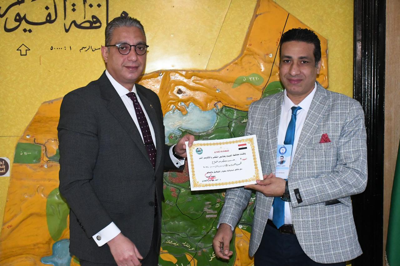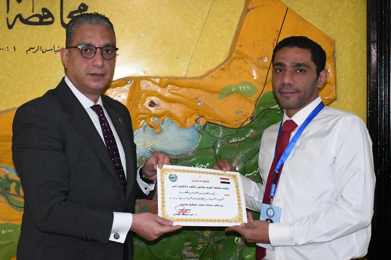 محافظ الفيوم يُكرم العاملين بمركز سيطرة الشبكة الوطنية | صور