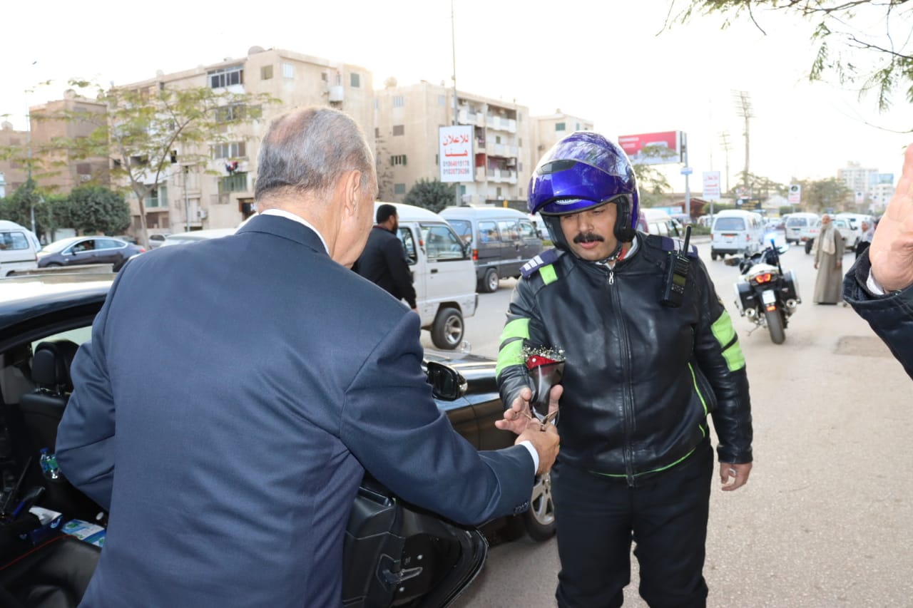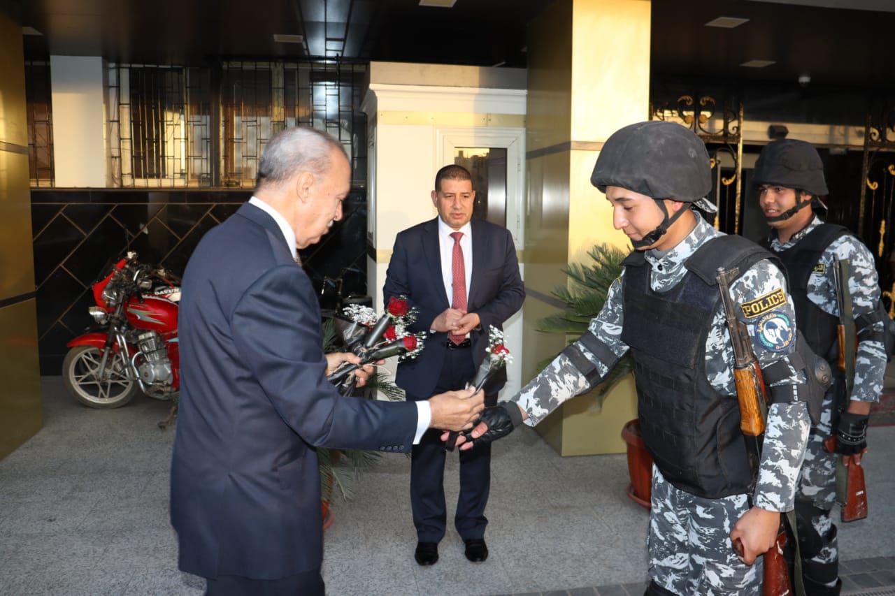وفى نهاية الاحتفالية قام الهجان بتوزيع الورود على ضباط وأفراد الشرطة في الطريق من مبنى قوات الأمن وحتى مبنى المحافظة للتعبير عن أصدق وأخلص التهاني القلبية بمناسبة عيد الشرطة.