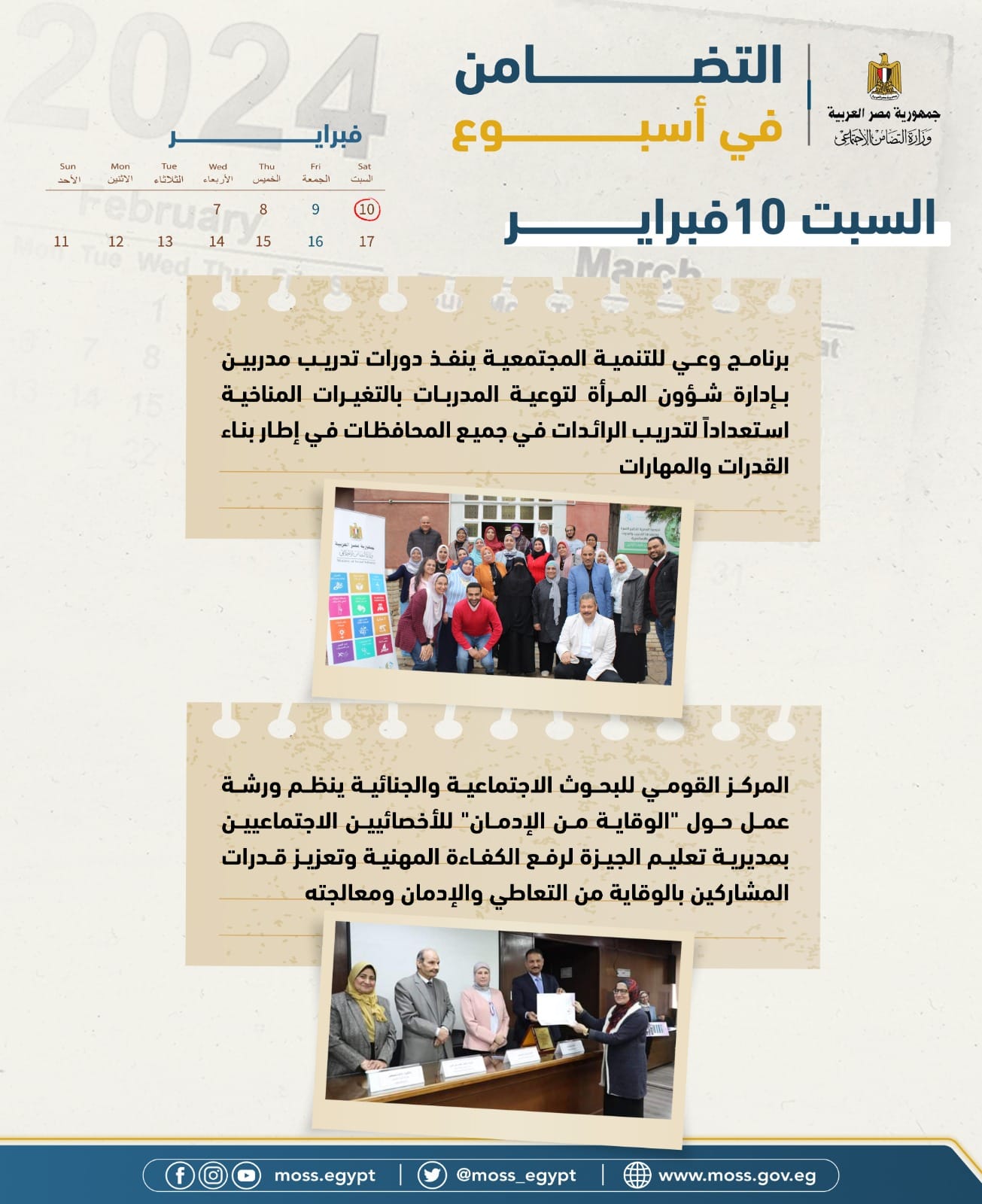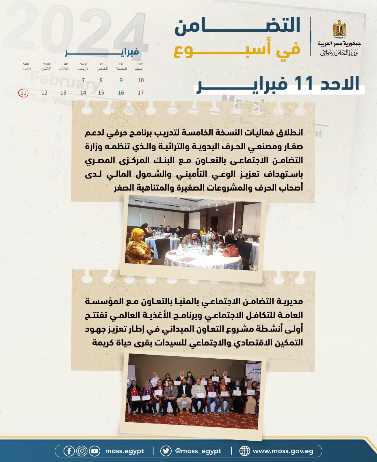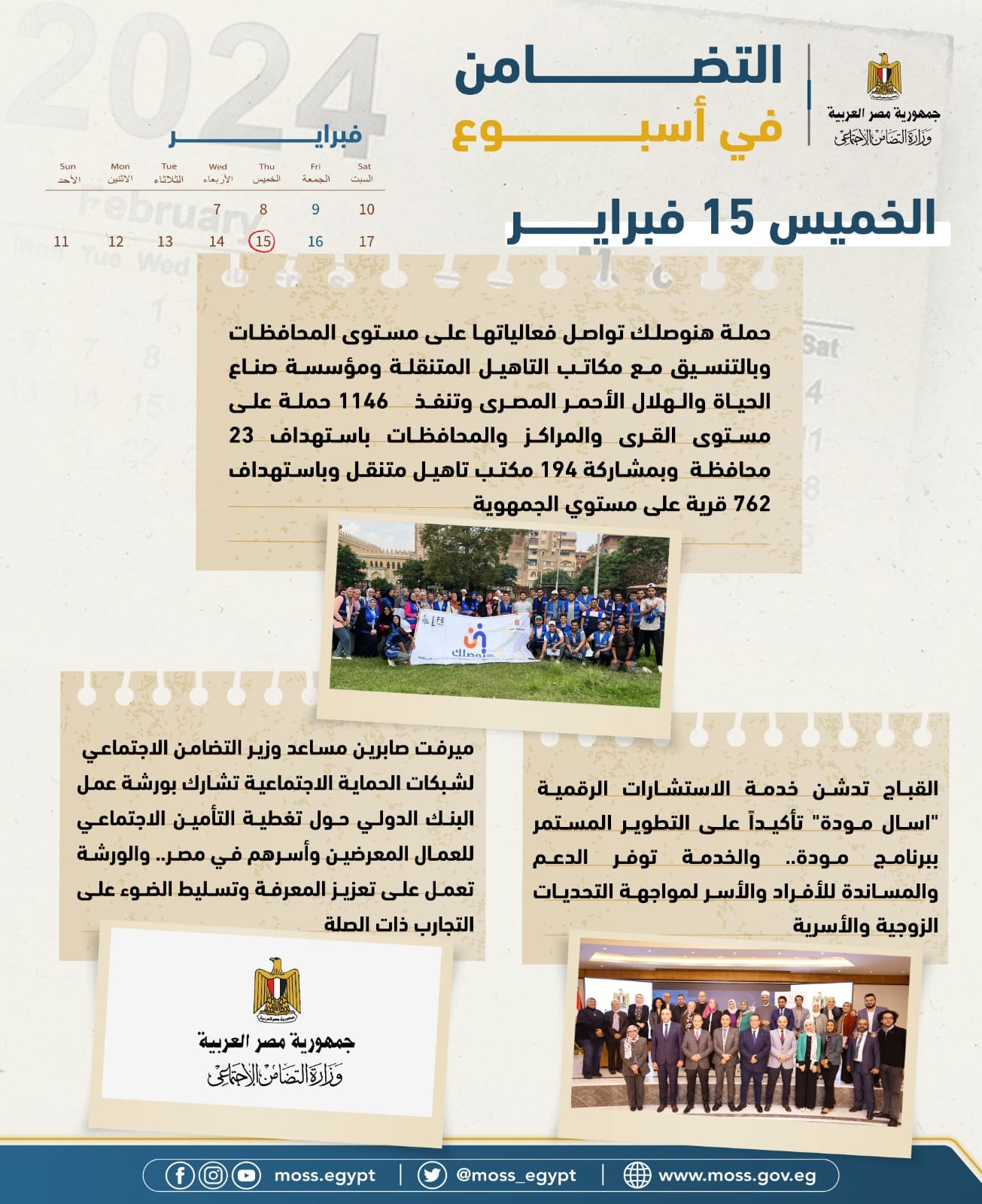 التضامن الاجتماعي: 16 فعالية فى رصد الحصاد الأسبوعي لأنشطة الوزارة (انفوجراف)