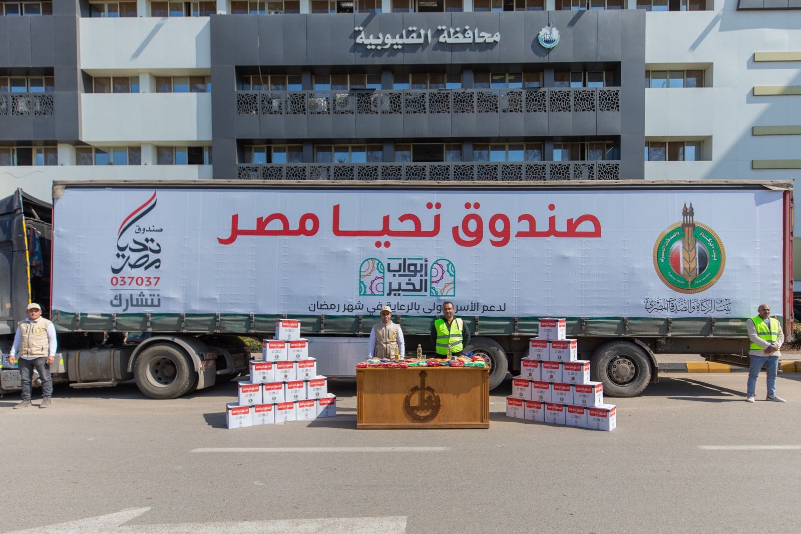 استقبل اللواء عبد الحميد الهجان، محافظ القليوبية، قافلة أبواب الخير، ليتم توزيعها على 170 ألف مواطن من الأسر المستحقة والأولى بالرعاية، في عدة مراكز منها بنها وطوخ وكفر شكر وشبين القناطر والقناطر الخيرية وشبرا الخيمة والخانكة والعبور والخصوص.