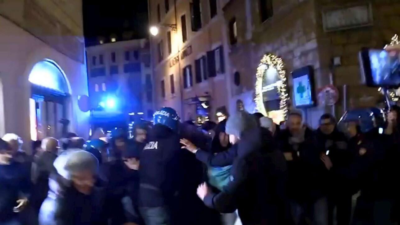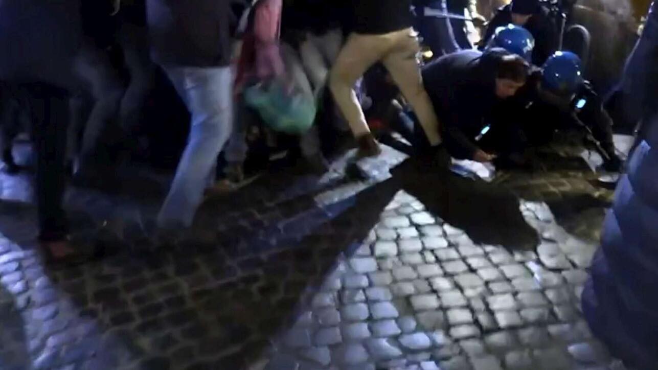 جوزيبي كونتي، زعيم حزب حركة الخمس نجوم المعارض، على الفور، علق ما حدث قائلاً: “مرة أخرى يتم الضرب بالهراوات ضد المتظاهرين الذين يحتجون على المذبحة المستمرة في غزة”.