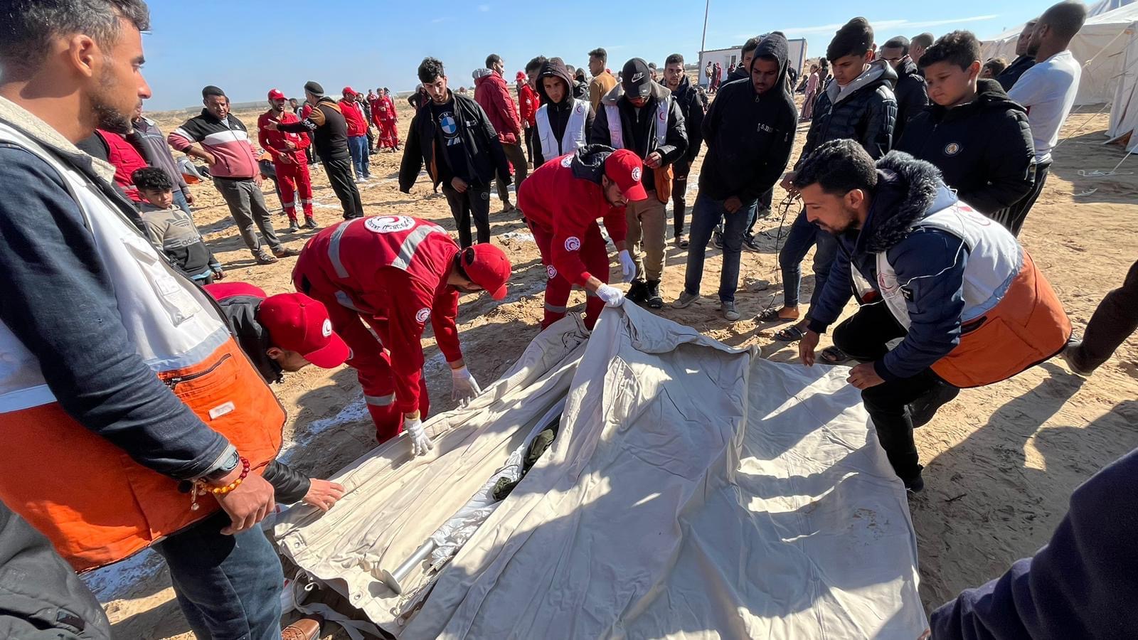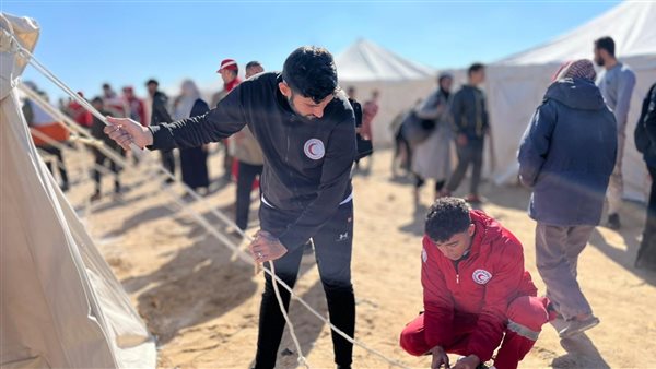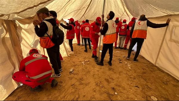 ويعلن الهلال الأحمر الفلسطيني على الدوام عن تعاونه مع الهلال الأحمر المصري لإنشاء أول مخيم منظم للنازحين في خان يونس”.
