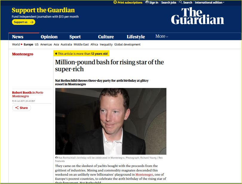 قالت أيضا “الجارديان” فى تقرير لها عن ضيوف الاحتفالية إن عددا من الذين شاركوا بالحضور أثرياء للغاية لدرجة أنهم قاموا بتمويل جيوش بأكملها، وبين قوسين أضاف التقرير: (وهو ما فعلته ذات مرة عائلة صبي عيد الميلاد نات روتشيلد، وهى في أوجها).