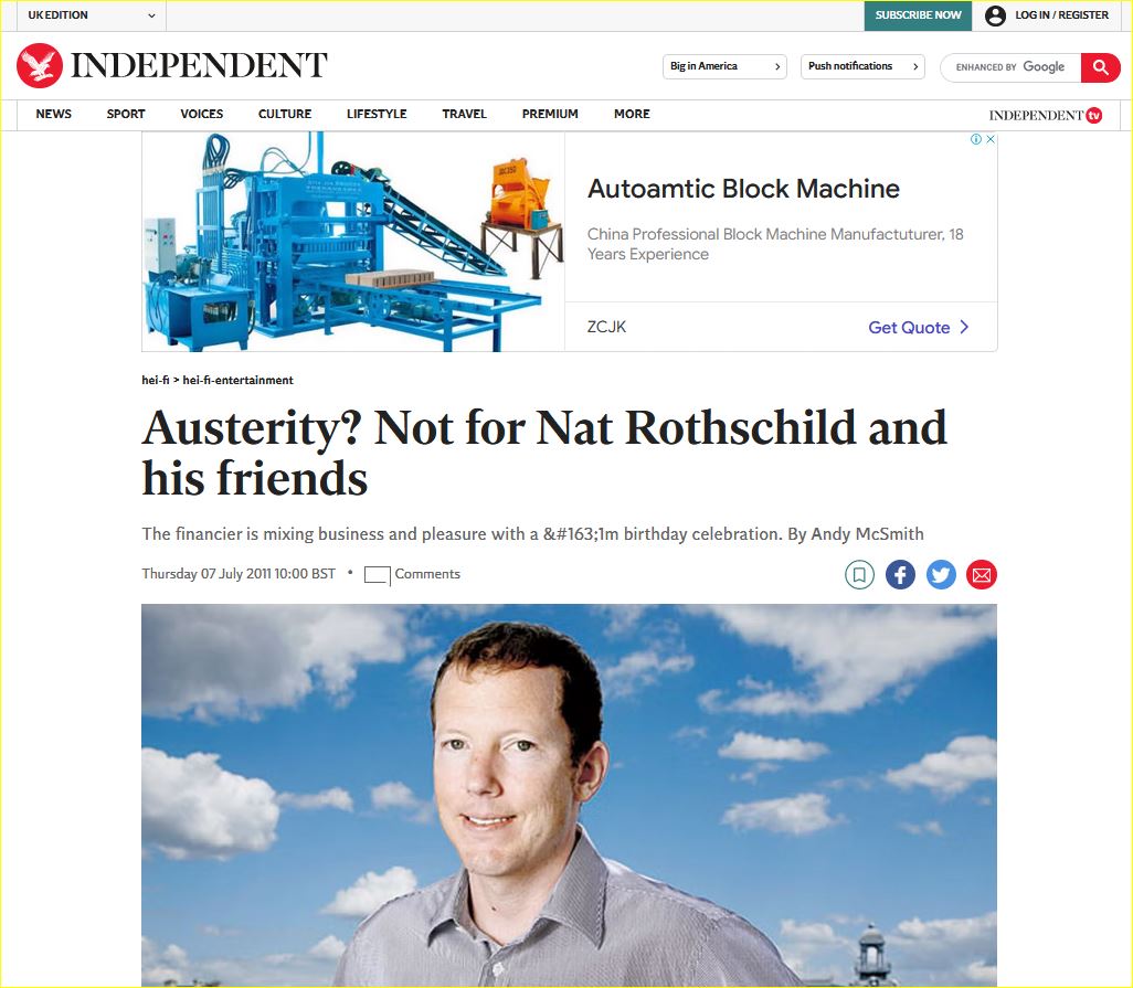 صديق نجيب ساويرس، هو نات روتشيلد، الذى ينحدر من عائلة روتشيلد الشهيرة، واسمه ناثانيال فيليب فيكتور جيمس روتشيلد، واسم الشهرة “نات”، مولود فى بريطانيا فى 12 يوليو 1971، وهو الابن الأصغر (له 3 أشقاء من أبيه) لكنه الوحيد ابن جاكوب بارون روتشيلد الرابع من زوجته سيرينا ماري دن.