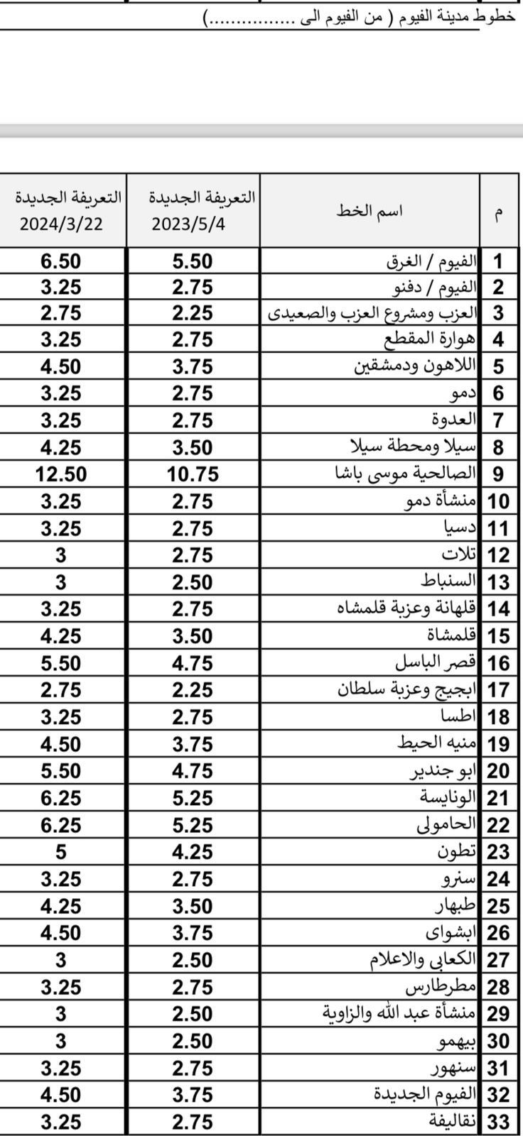 محافظ الفيوم يعلن تعريفة الركوب الجديدة لسيارات الأجرة والتاكسي.. بعد تحريك أسعار المحروقات