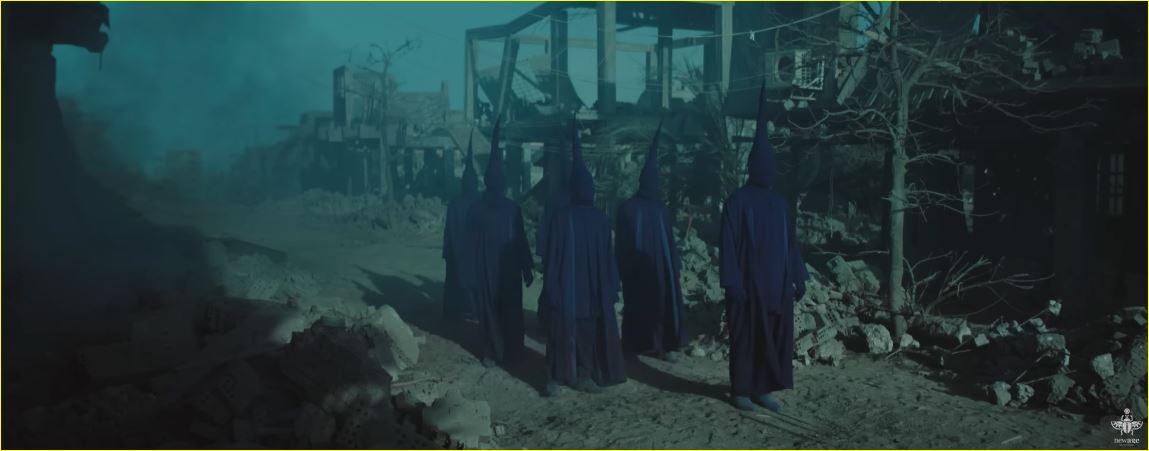 يبدأ الفيديو بمشهد لأوراق أشجار الزيتون المحروقة تتناثر حول آثار أقدام 6 شياطين، في إشارة إلى الدمار الذي خلفه الاحتلال الإسرائيلي.