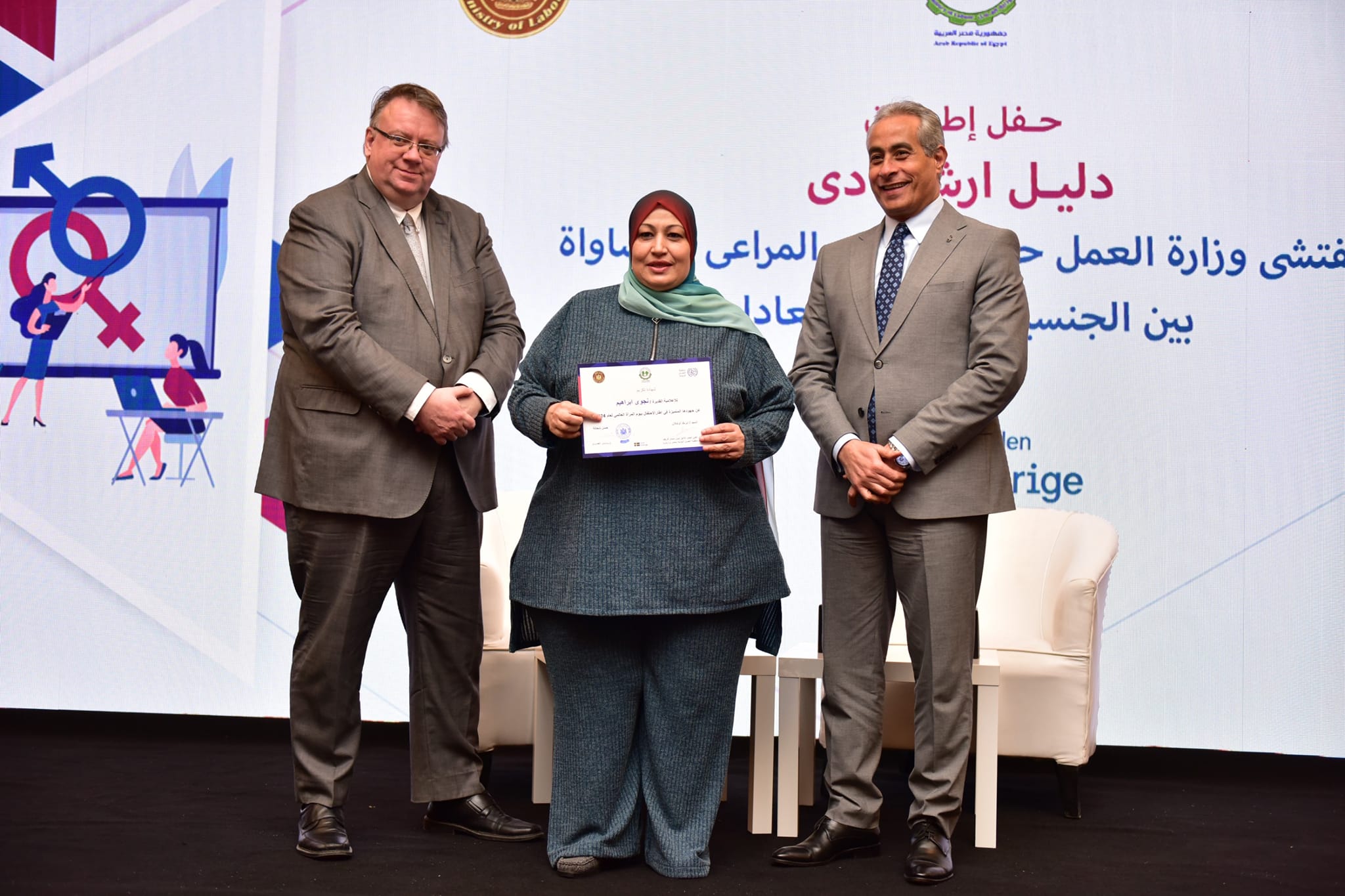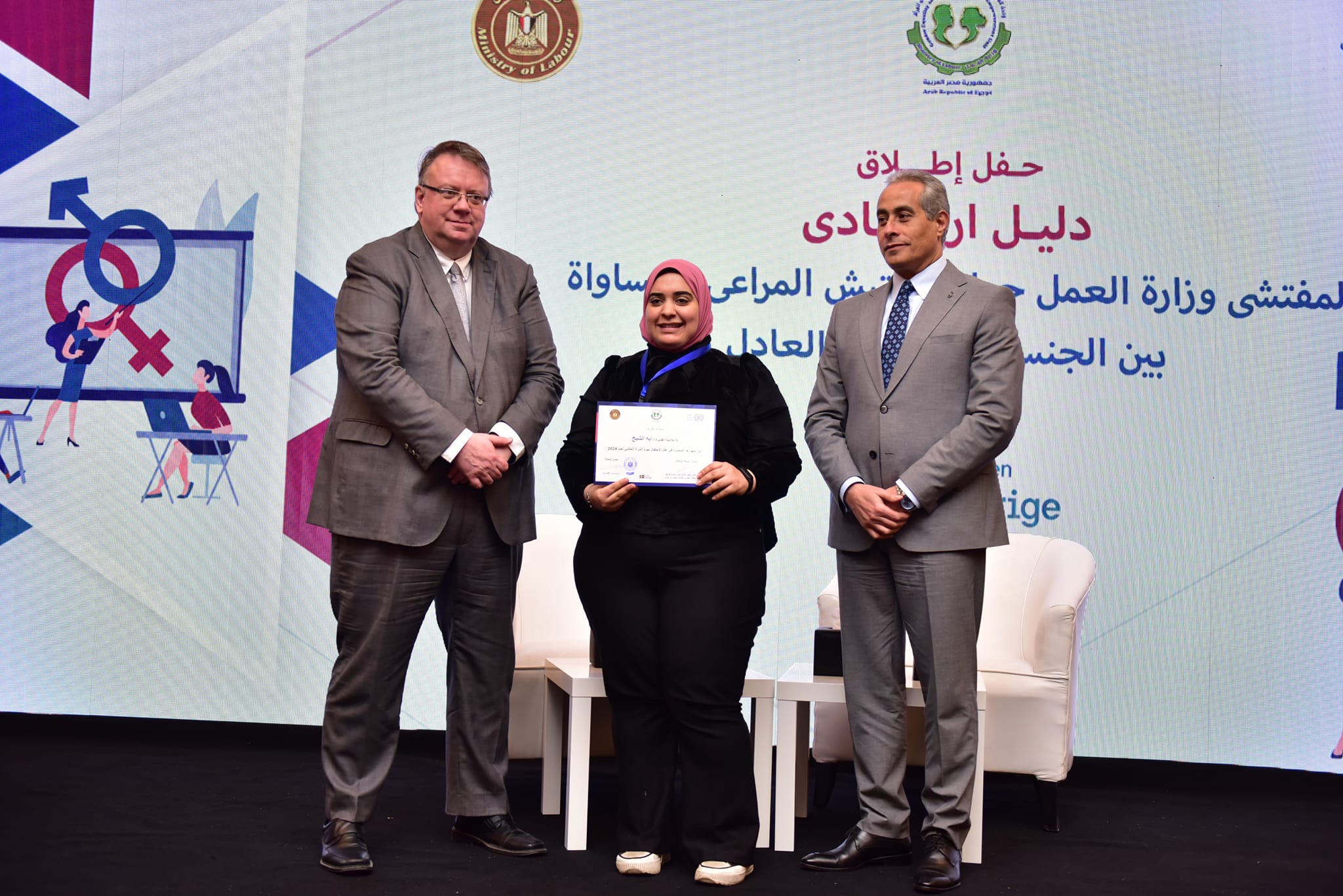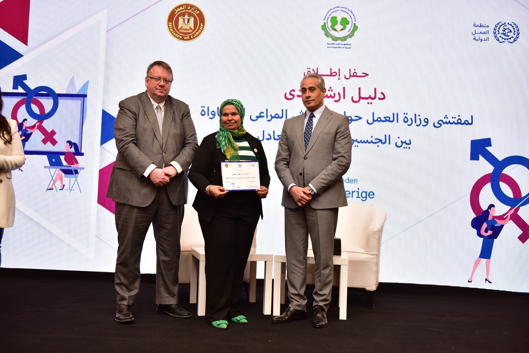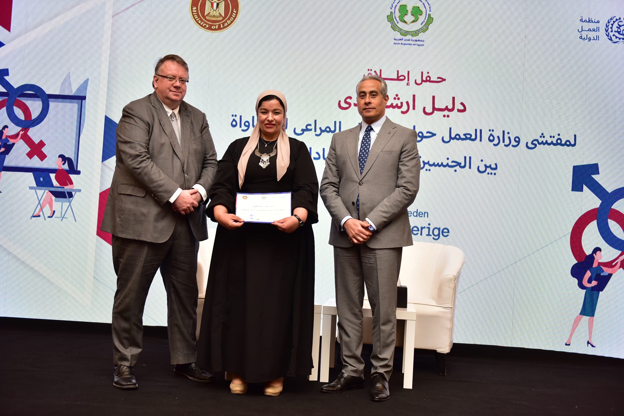 واقيم حفل التكريم مساء أمس الخميس خلال احتفالية إطلاق “الدليل الإرشادي لمُفتشي العمل حول التفتيش المُراعى للمساواة بين الجنسين والانتقال العادل”، بالتعاون مع منظمة العمل الدولية، بِمُشاركة عددِ من الخُبراء والمُستشارين المحليين والدوليين،والمنعقدة بأحد فنادق القاهرة..