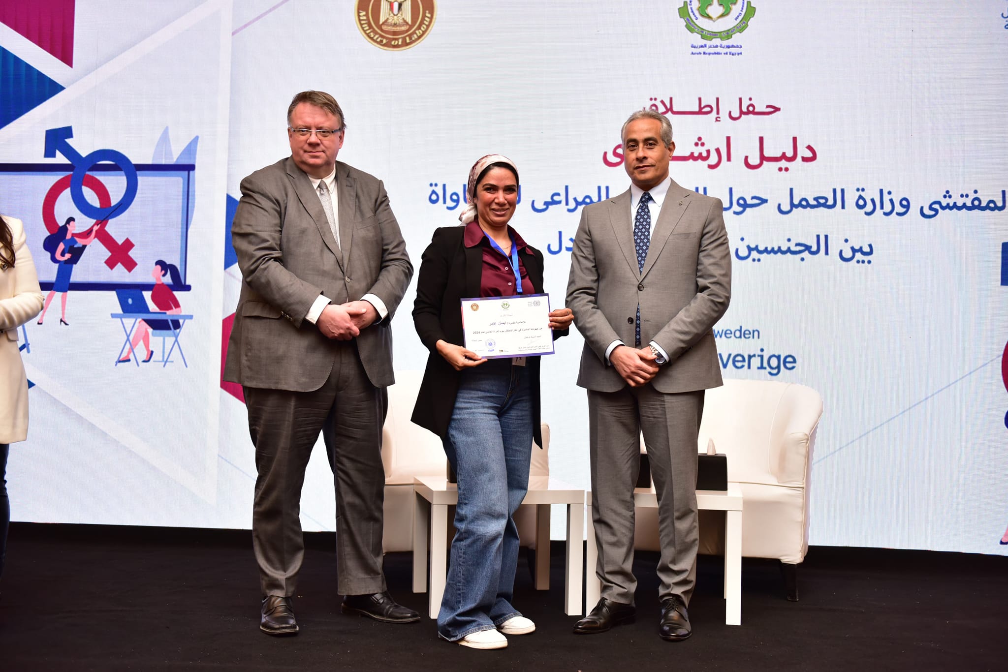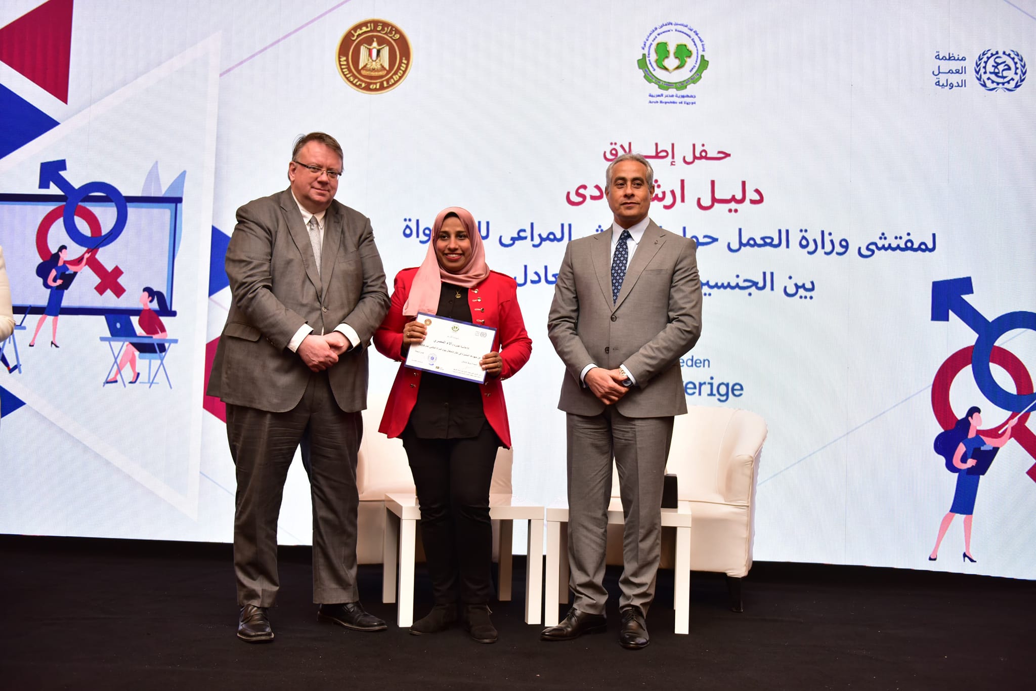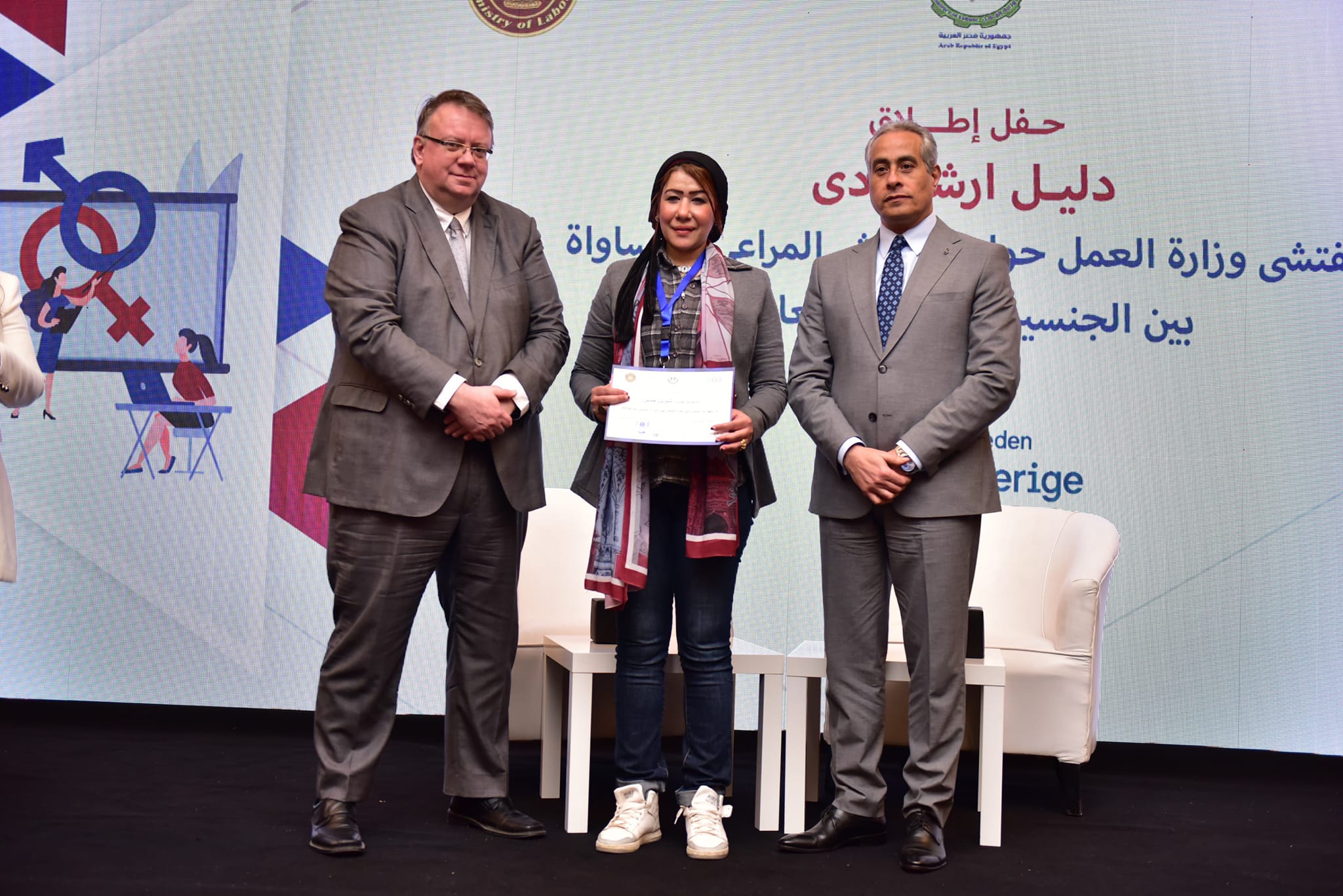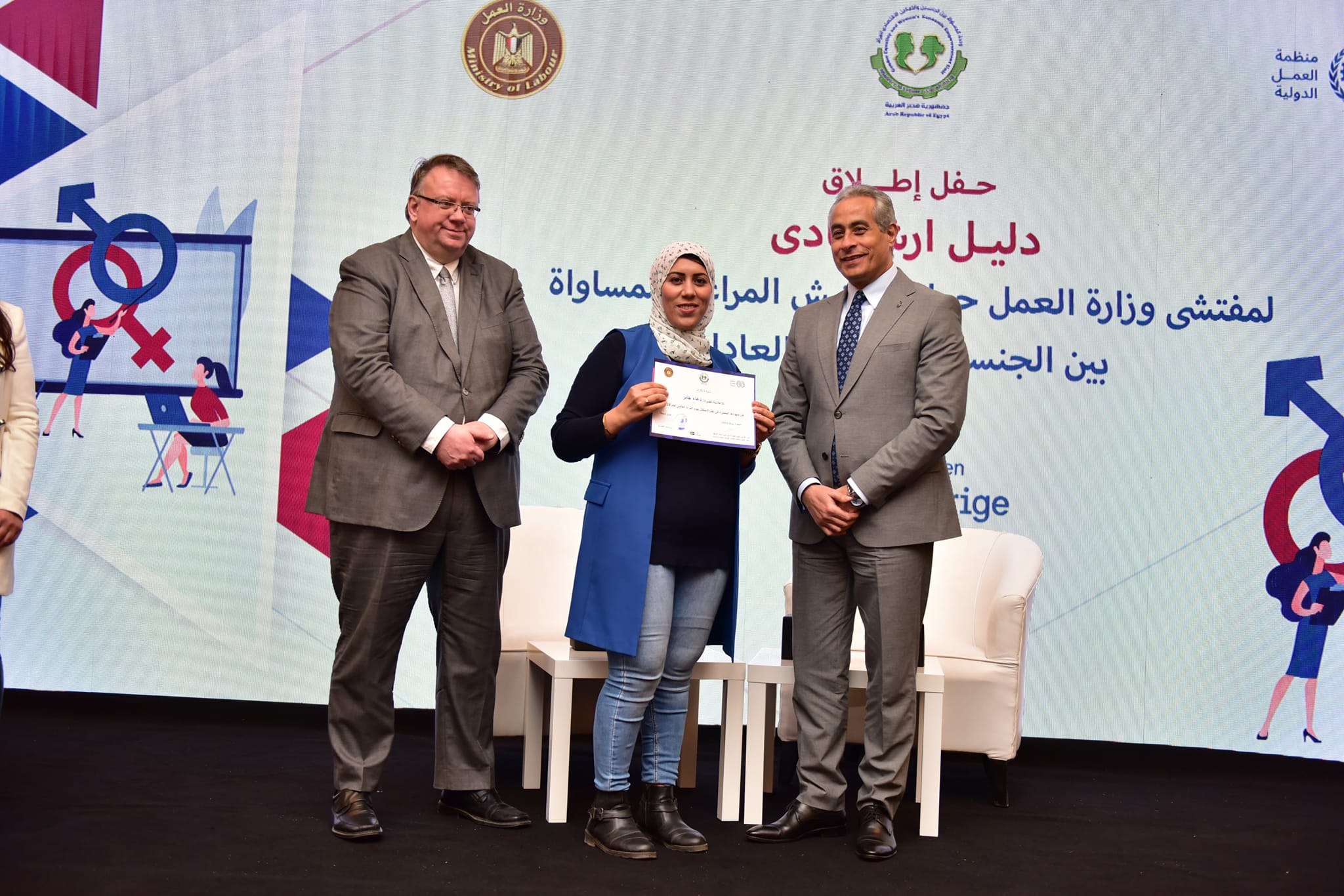 واقيم حفل التكريم مساء أمس الخميس خلال احتفالية إطلاق “الدليل الإرشادي لمُفتشي العمل حول التفتيش المُراعى للمساواة بين الجنسين والانتقال العادل”، بالتعاون مع منظمة العمل الدولية، بِمُشاركة عددِ من الخُبراء والمُستشارين المحليين والدوليين،والمنعقدة بأحد فنادق القاهرة..