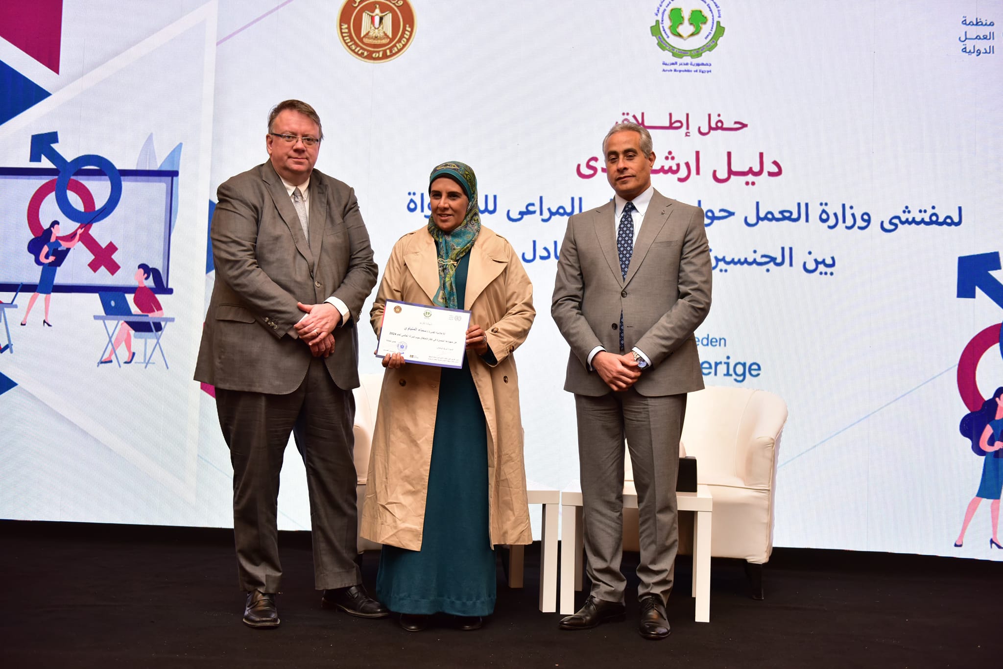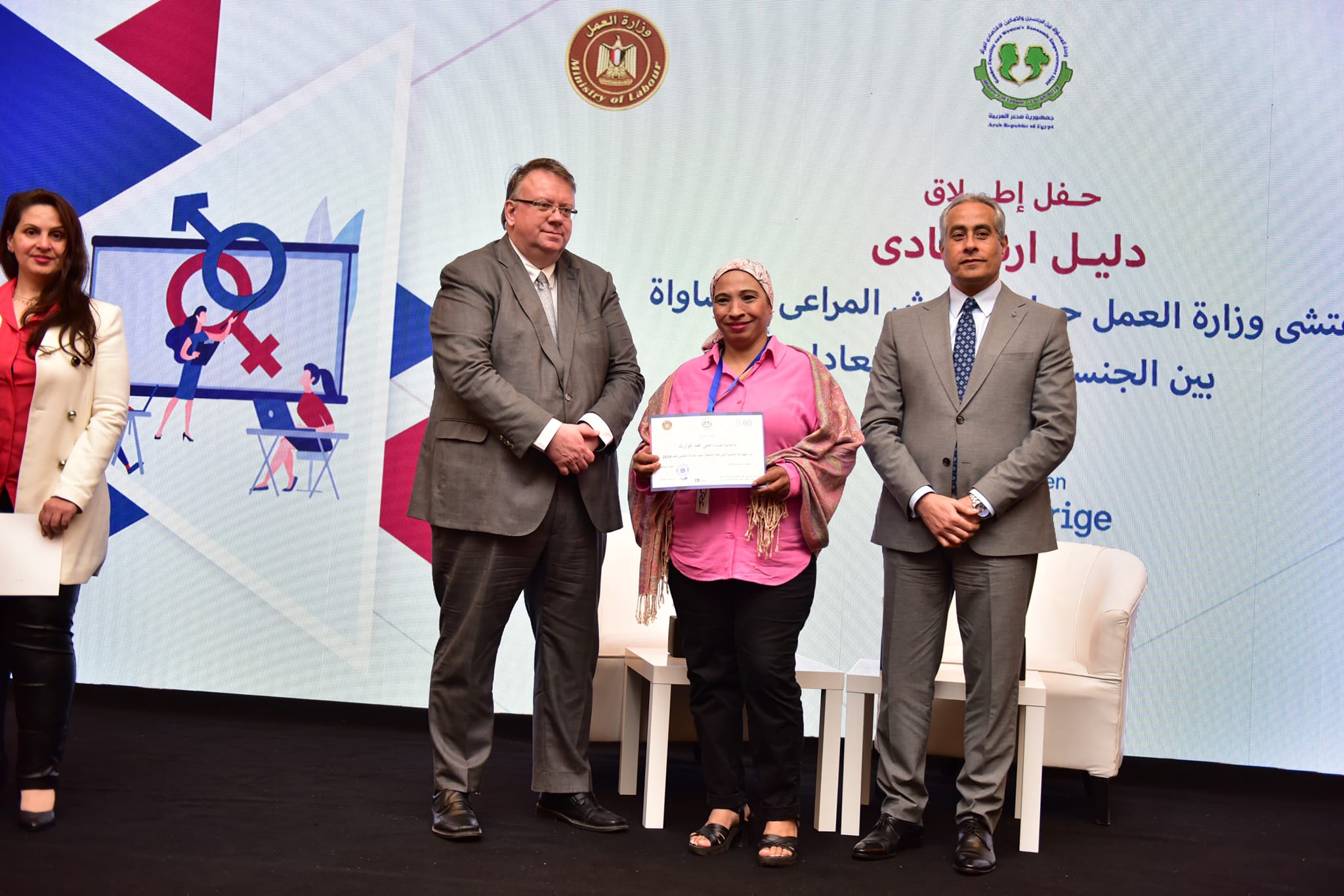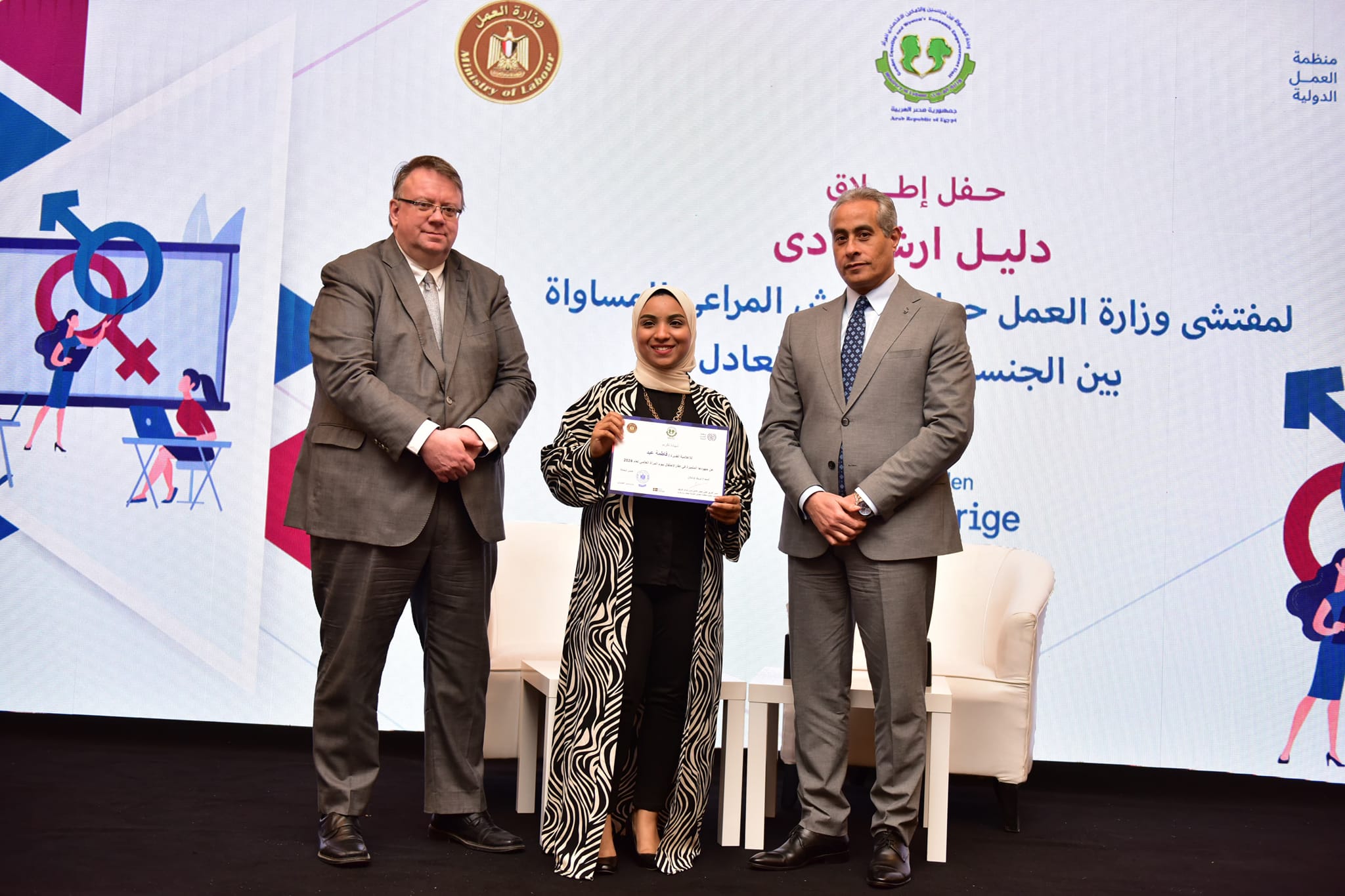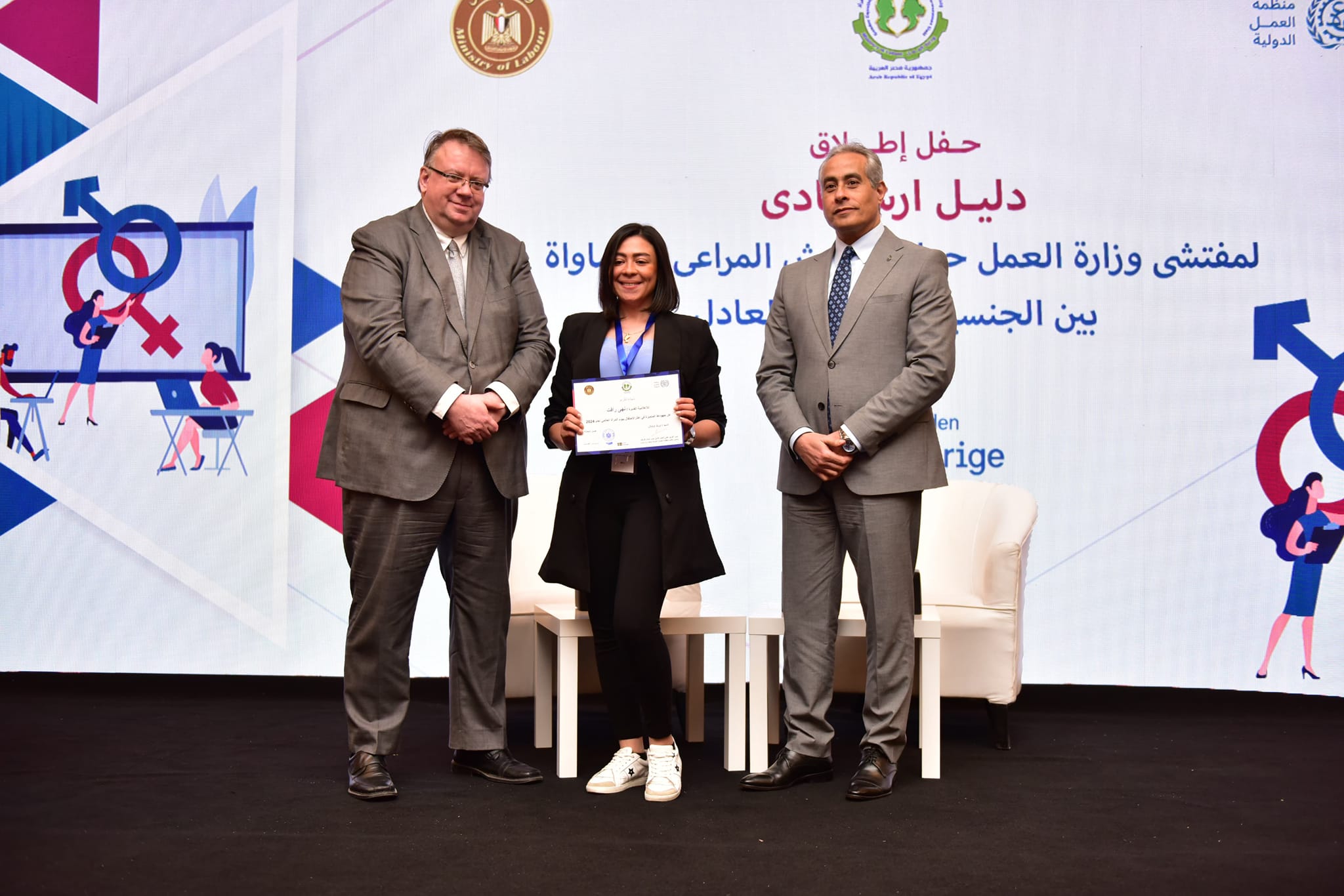 واقيم حفل التكريم مساء أمس الخميس خلال احتفالية إطلاق “الدليل الإرشادي لمُفتشي العمل حول التفتيش المُراعى للمساواة بين الجنسين والانتقال العادل”، بالتعاون مع منظمة العمل الدولية، بِمُشاركة عددِ من الخُبراء والمُستشارين المحليين والدوليين،والمنعقدة بأحد فنادق القاهرة..