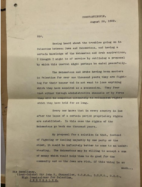 ويستطرد “تايمز أوف إسرائيل” لكن رسالته تمثل مع ذلك خطوة غير عادية وشجاعة – إن لم تكن خيالية إلى حد ما – من رجل عربي بارز للغاية ووصي مستقبلي لملك مصر، اتخذها بعد فترة وجيزة من أعمال العنف في أغسطس 1929.