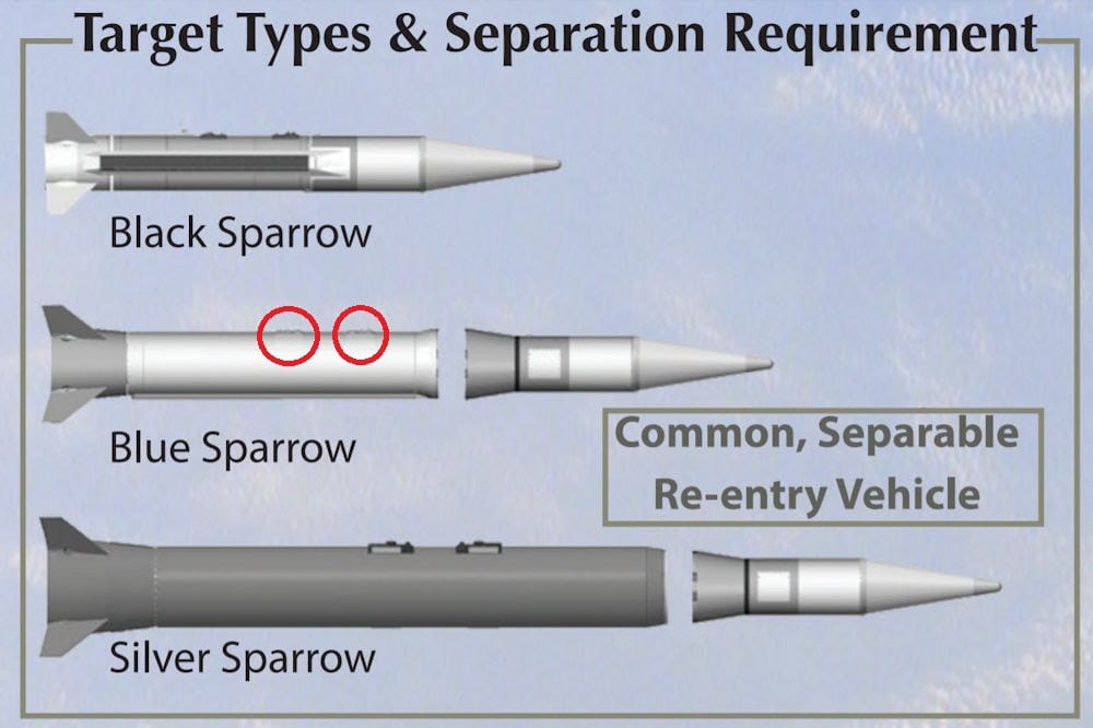 صاروخ روكس المذكور وحيد المرحلة بالتالي يمكن استبعاده بقي Silver sparrow هو الوحيد ذو رأس منفصل باقي الصواريخ ذات مرحلة واحدة، لكن هناك اختلاف، وهو ما جعلنا نذكر أن الحطام مشابه لروكس وسبارو وليس مطابقا له لكن فكرة العمال واخدة.