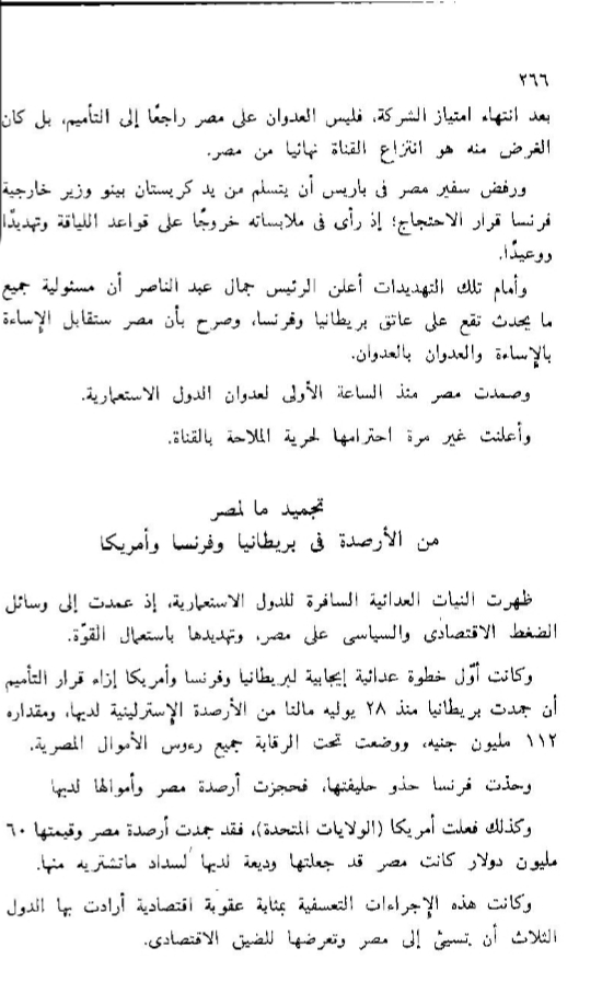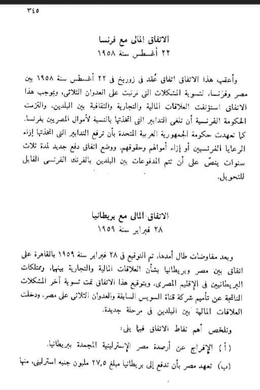 عبدالناصر يسترد ٦١.٥ مليون جنيه إسترليني من ديون بريطانية المستحقة لمصر عدا ونقدا وهو ماعجز عنه الملك فاروق وحكومات الوفد المتعاقبة قبل ثورة ٢٣يوليو ١٩٥٢ - ويسترد الأموال المصرية التى جمدتها فرنسا بعد تأميم شركة قناة السويس - ويسترد 60 مليون دولار جمدتها الولايات المتحدة الأمريكية بعد قرار التأميم - وفوقها ممتلكات الرعايا البريطانيين فى مصر وكافة الممتلكات البريطانية التى تم تأميمها وقبلها أصول شركة قناة السويس داخل مصر ودخل قناة السويس بالكامل بعد ٢٦ يوليو ١٩٥٦ وهو تاريخ تأميم شركة قناة السويس