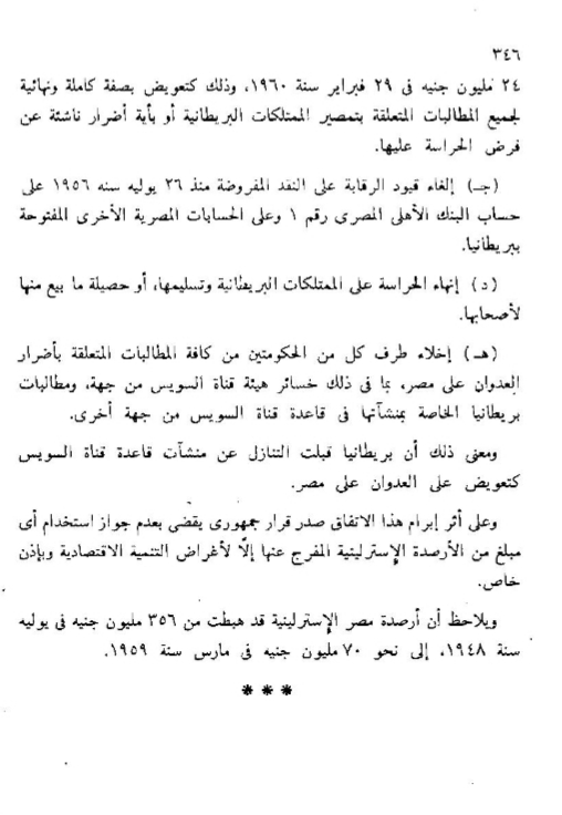 ودفعت ٢٧.٥ مليون جنيه ثمن الممتلكات البريطانية التى تم تأميمها.