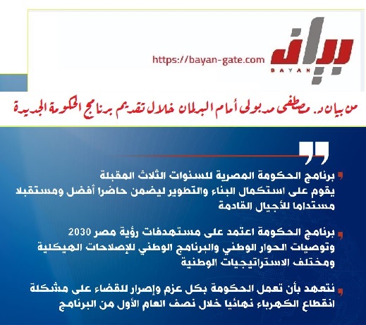 ويعرض الانفوجراف التالى بعض من كلمات د. مصطفى مدبولى خلال تقديمه برنامج الحكومة أمام البرؤلمان اليوم: