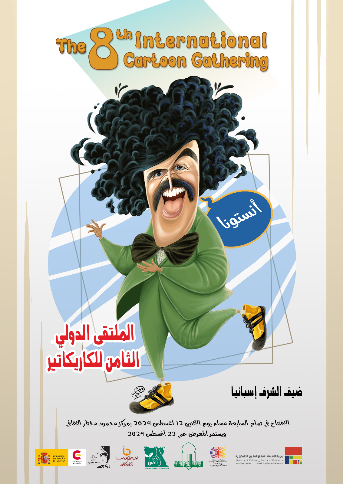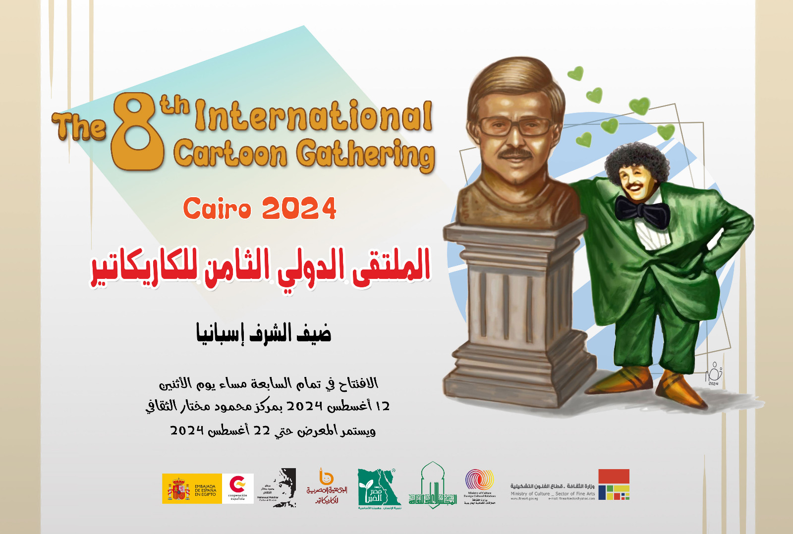 يفتتح “الملتقى” الدكتور وليد قانوش رئيس قطاع الفنون التشكيلية، والفنان مصطفى الشيخ رئيس الجمعية المصرية للكاريكاتير، والدكتورة مجدلينا كروث المستشار الثقافي لسفارة مملكة إسبانيا بالقاهرة، والفنان فوزي مرسي القوميسير العام.
