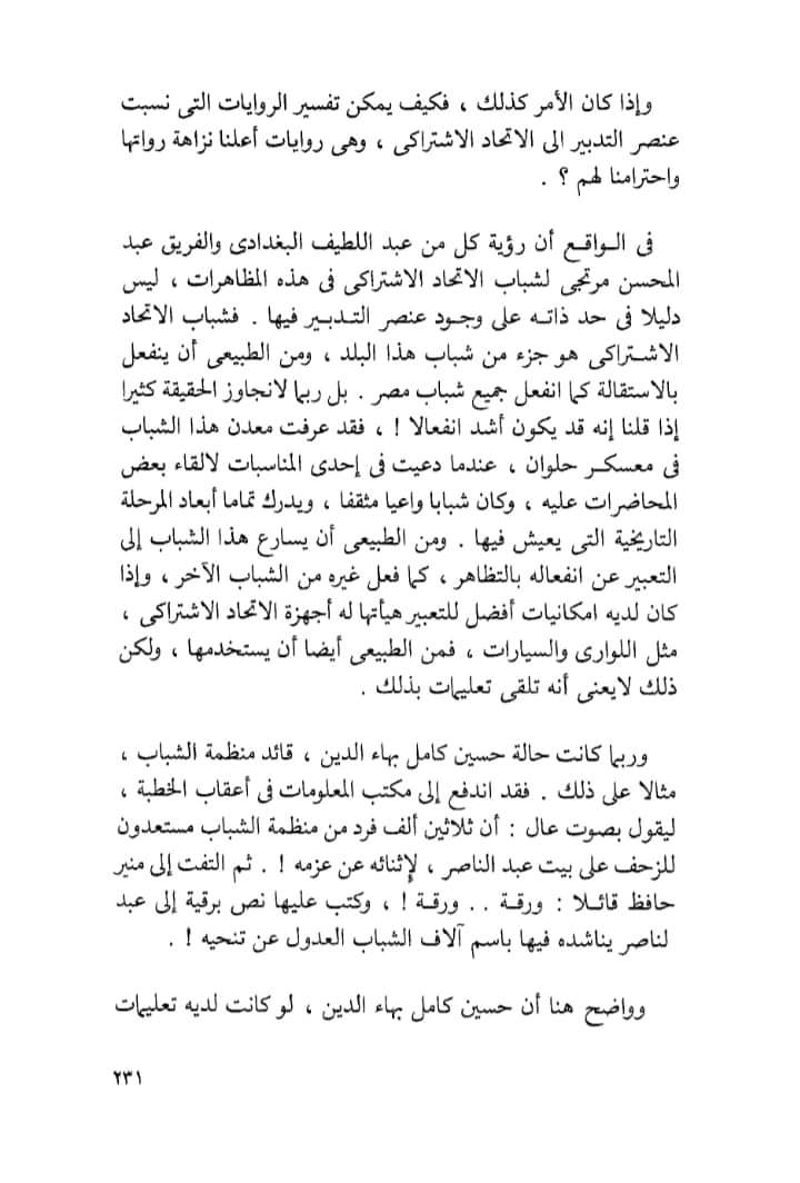 وفى صفحة ٢٣١من الكتاب، يفند د.عبدالعظيم رمضان رؤية كل من عبداللطيف البغدادى والفريق عبدالمحسن مرتجى،