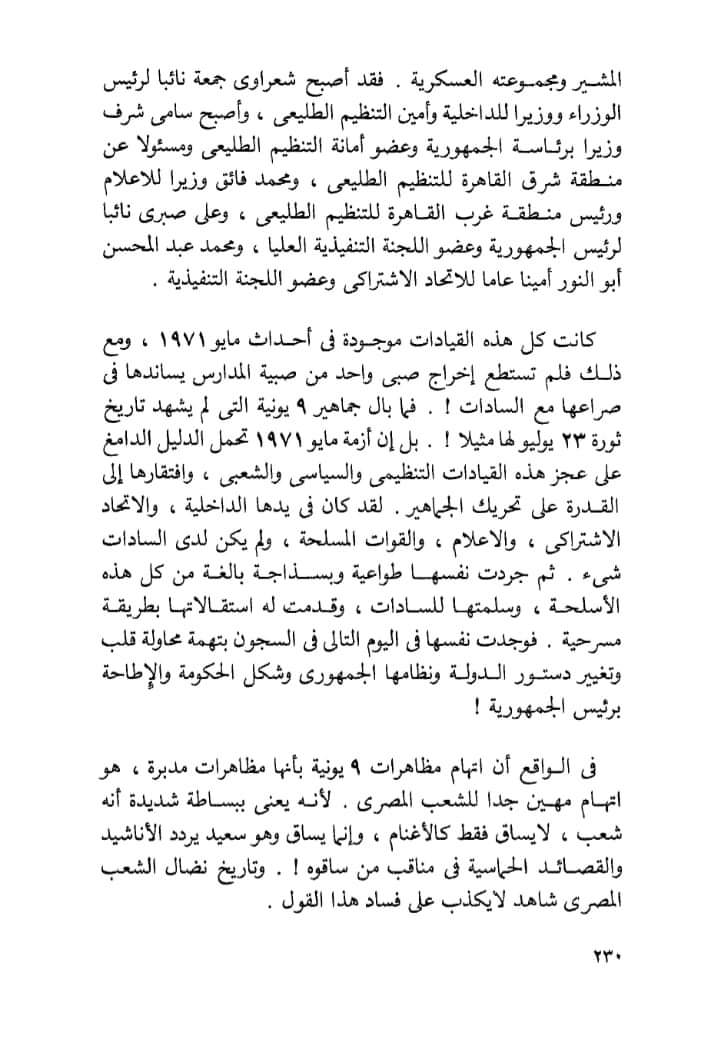 والأهم أن كل القيادات السياسية والشعبية المتهمة بتدبير مظاهرات ٩يونيو كانت موجودة في أزمة مايو ١٩٧١.