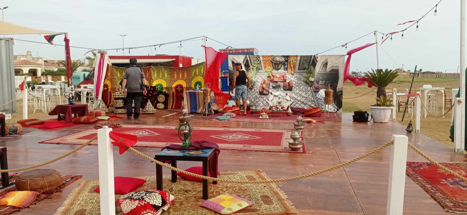 أما الجناح العربي الثالث في المهرجان فكان من نصيب المغرب والذي تميز بالتنوع في العرض بدءا من الحناء المغربية والتي تهافت عليها السيدات والفتيات الإيطاليات للرسم علي أيديهن وأرجلهن ألي الشاي المغربي الأخضر مرورا بالشيشة العربية والتي حرص الشباب الإيطالي الزائر للمهرجان علي إلتقاط أنفاسها مع هواء البحر العليل .