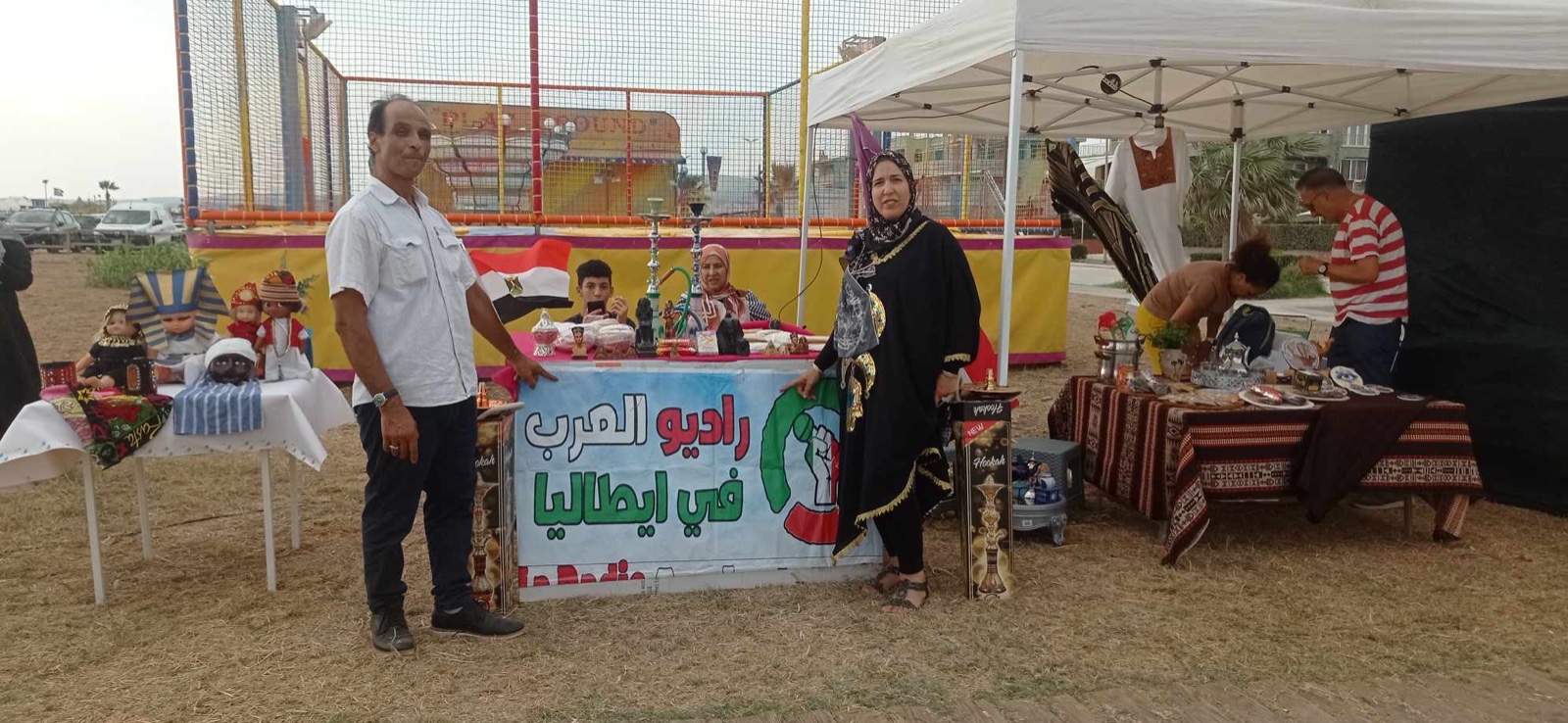 أما عن الأجنحة العربية في المهرجان ؛ فقد شارك أبناء الجالية المصرية في روما بجناح مصري قام برعايته الناشط الإعلامي المصري في إيطاليا ” إكرامي هاشم ” مع مجموعة من نشطاء الجالية المصرية في روما وعلي رأسهم زينب محمد رئيس وولاء عبد اللطيف وفنانة الأزياء السيدة ولاء النجار.