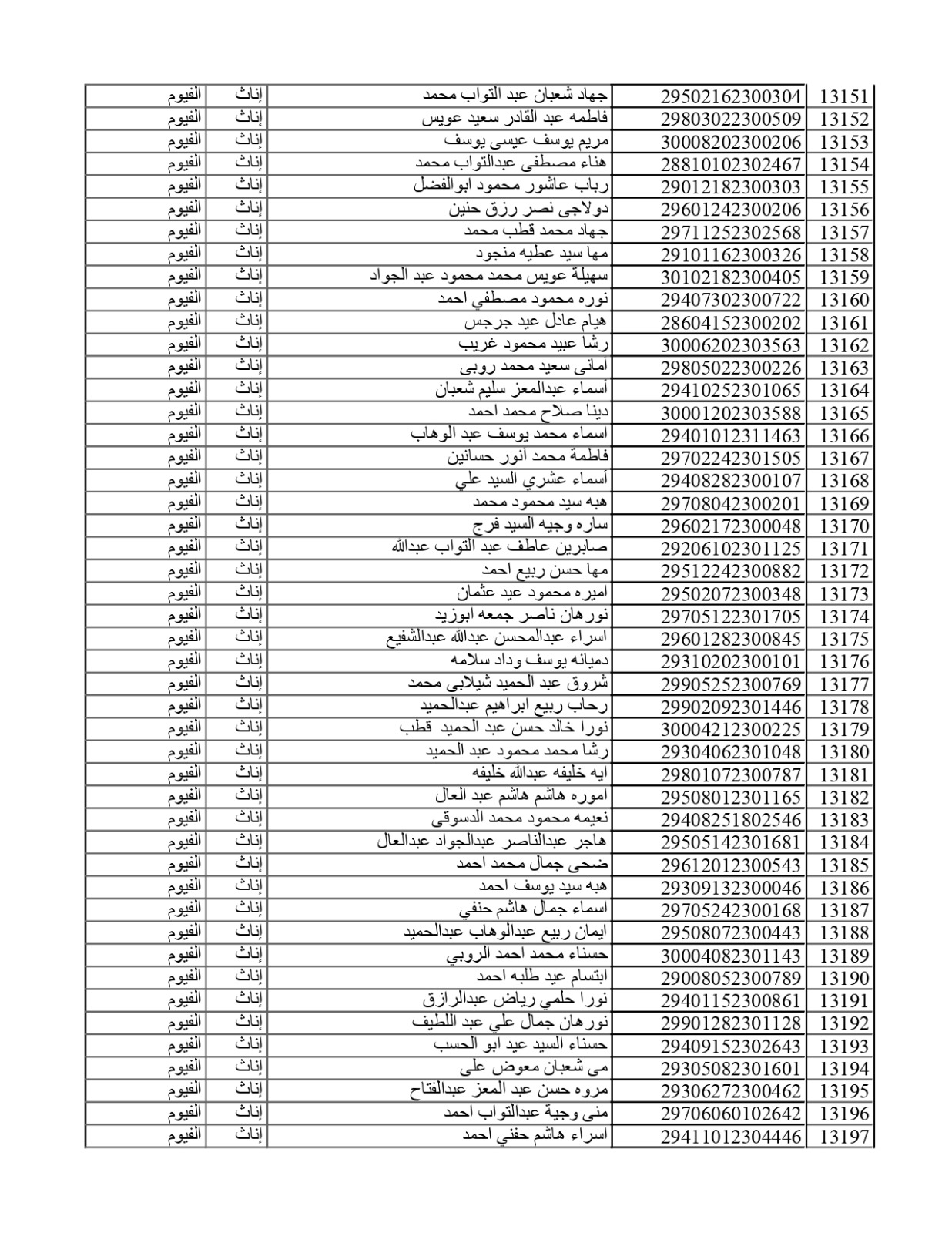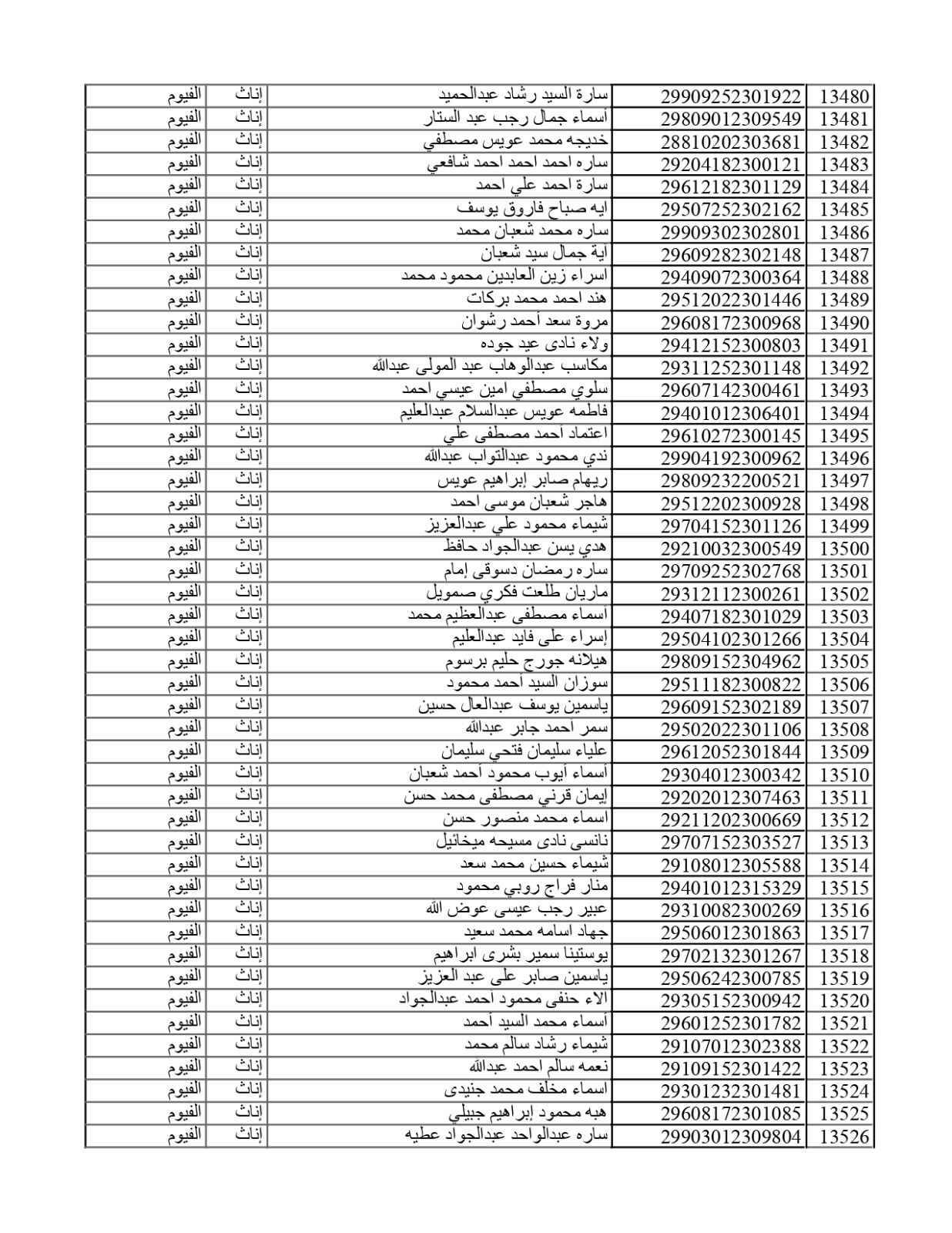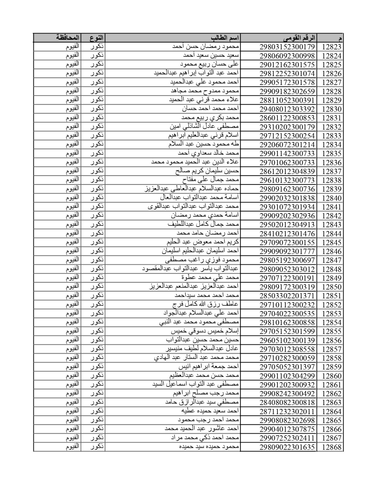 أعلنت مديرية التربية والتعليم بالفيوم منذ قليل عن أسماء المعلمين الجدد ” في مسابقة 30 الف معلم – الدفعة الثانية”، والذي تم اختيارهم للعمل بمدارس مديرية التربية والتعليم بالفيوم.