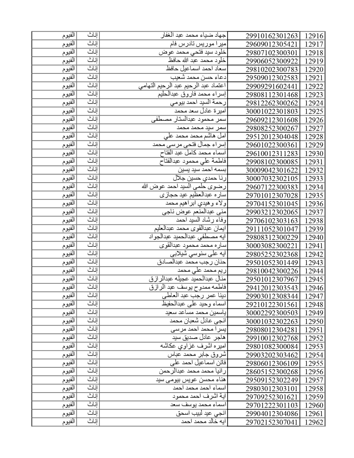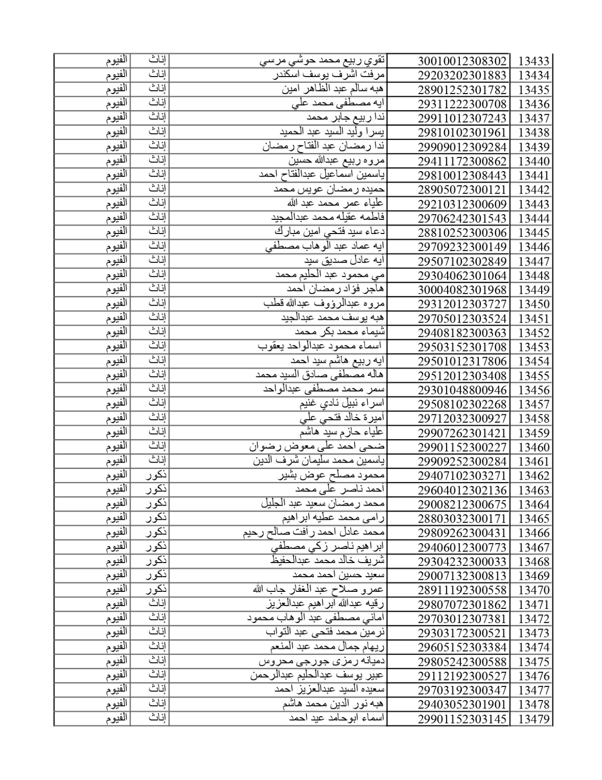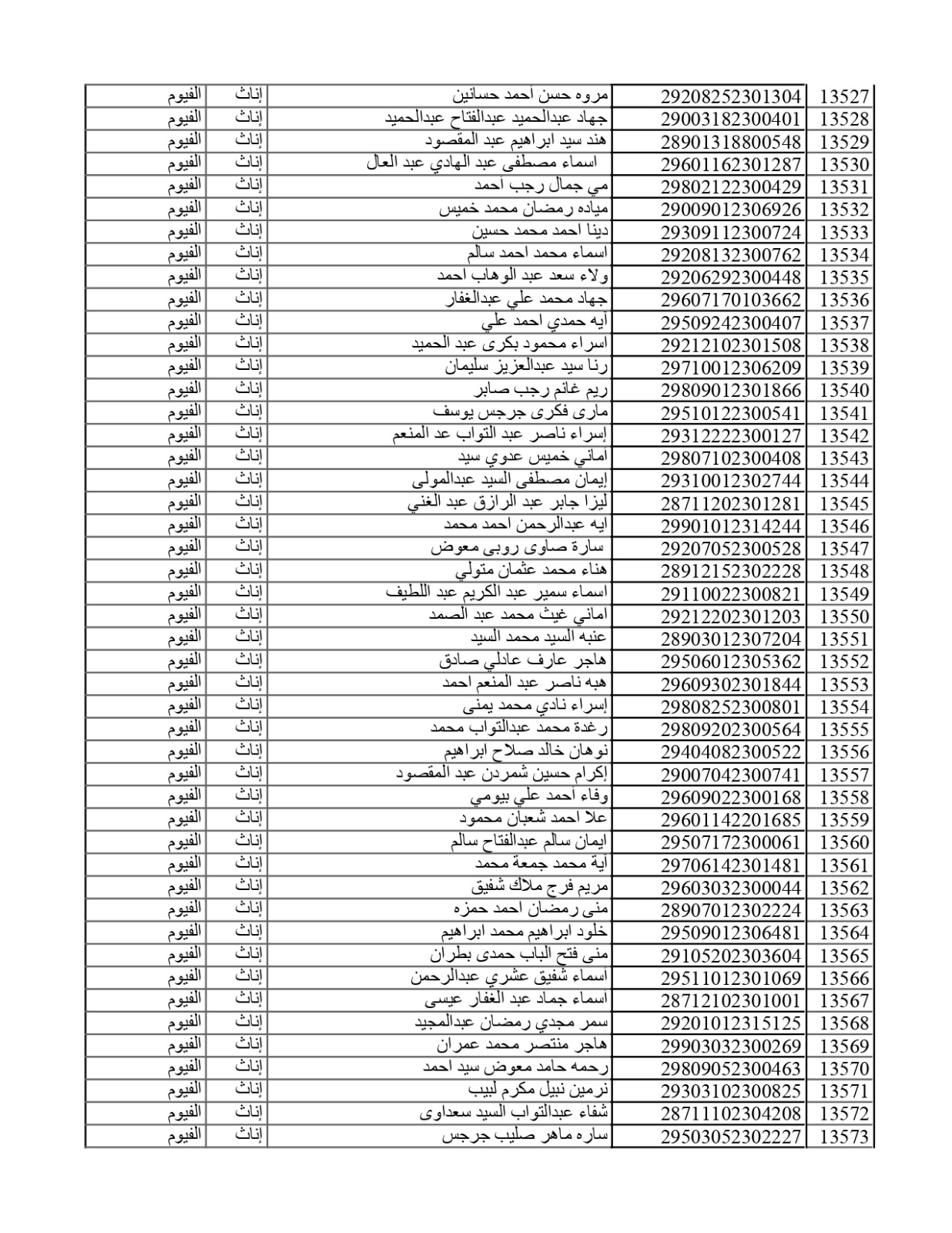 أعلنت مديرية التربية والتعليم بالفيوم منذ قليل عن أسماء المعلمين الجدد ” في مسابقة 30 الف معلم – الدفعة الثانية”، والذي تم اختيارهم للعمل بمدارس مديرية التربية والتعليم بالفيوم.