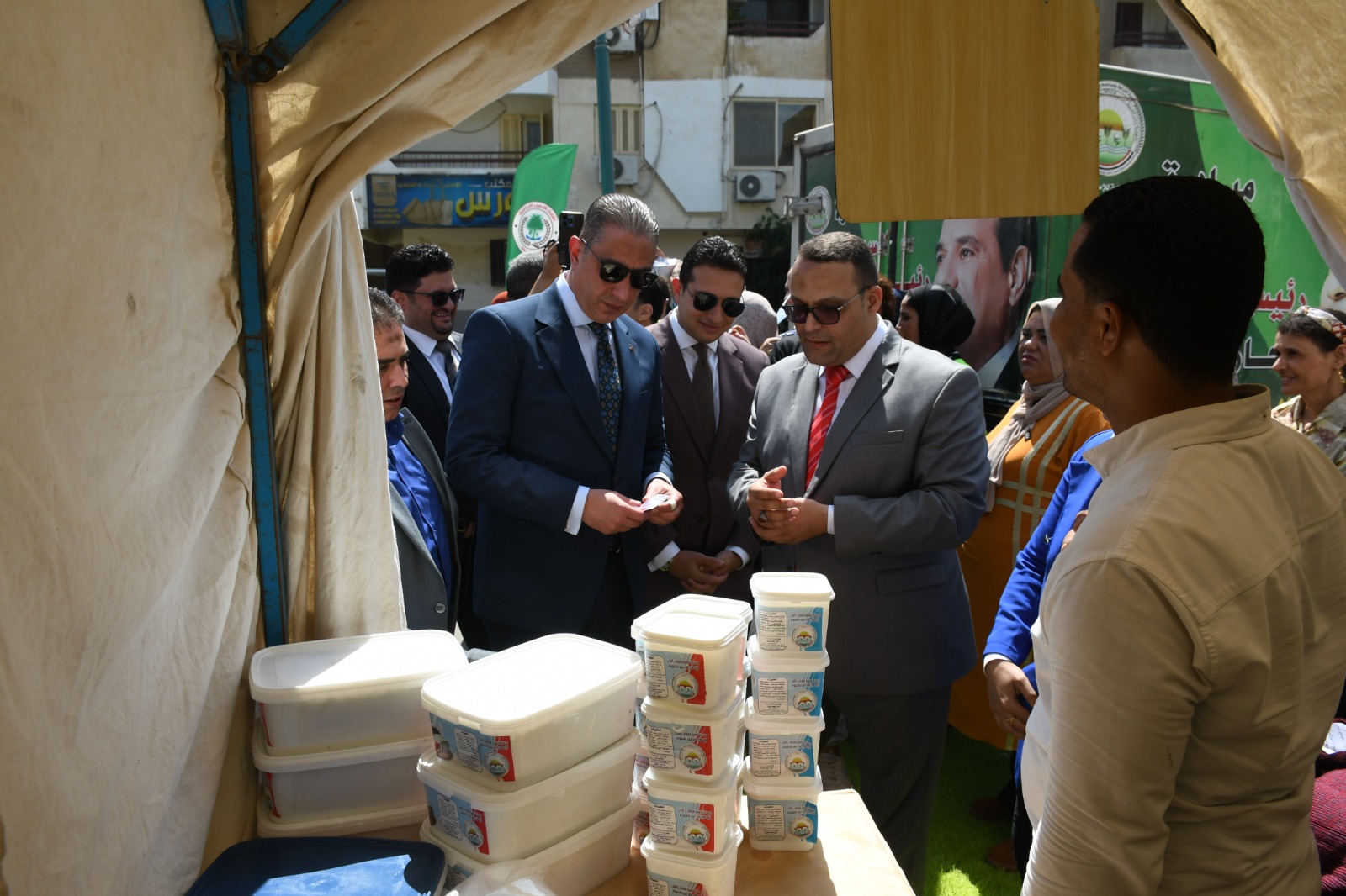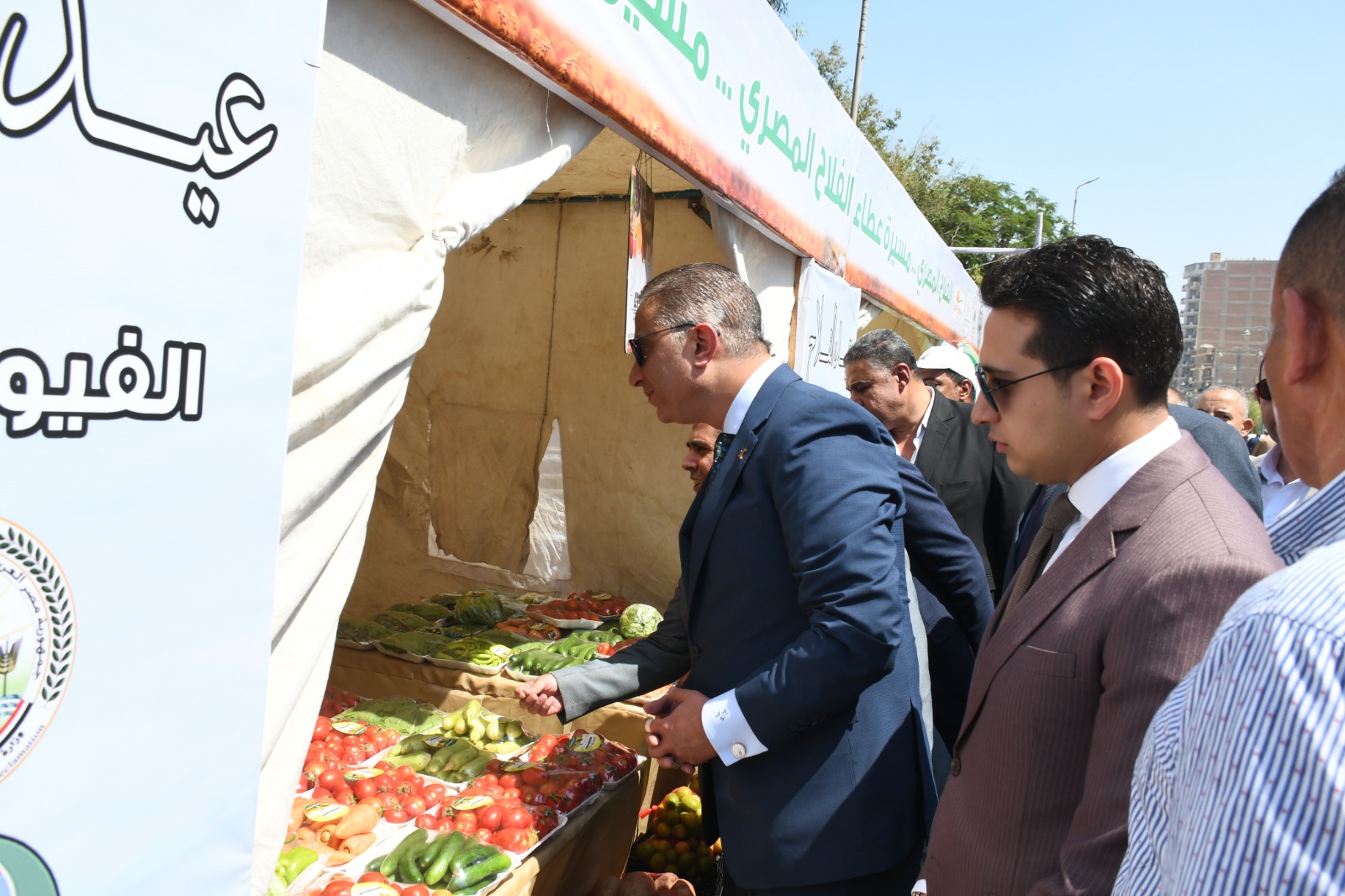 وعلى هامش الاحتفال، افتتح محافظ الفيوم، معرض المنتجات الزراعية والميكنة الحديثة، الذي ضم منتجات غذائية شملت العسل ومنتجات الألبان، والخضروات، واللحوم البلدية والطيور، ومخللات ومخبوزات، بجانب شتلات لنباتات الزينة، وأعمال الخوص والجريد، بجانب معرض الآلات والميكنة الزراعية الحديثة، الذي ضم جرارات زراعية وسطارات لزراعة القمح، وحصادات محاصيل وغيرها.