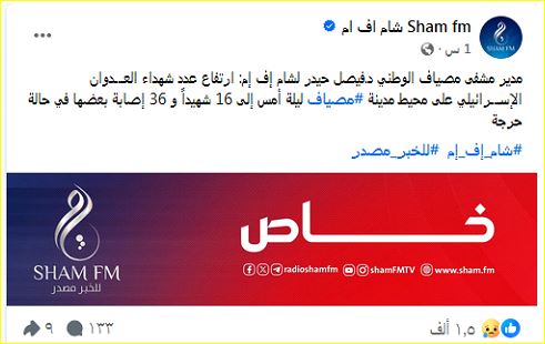 واكتفت وسائل إعلام إسرائيلية منها صحيفة “ يديعوت احرونوت” بنقل أنباء القصف عن وسائل إعلام سورية.