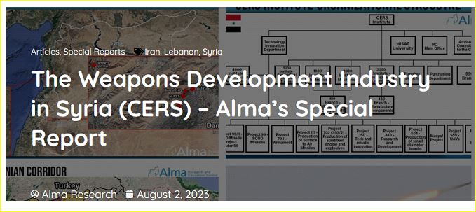وقال المعهد الإسرائيلي، في آب 2023، عمليات التصنيع هذه تتركز حول مركز البحوث العلمية، الذي يعد قلب الصناعة العسكرية السورية.