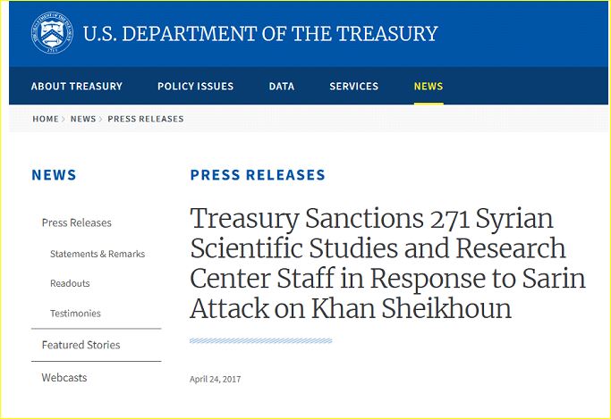 وقال وزير الخزانة الأمريكي حينها، ستيفن منوشين، “تستهدف هذه العقوبات الشاملة مركز الدعم العلمي للهجوم المروع بالأسلحة الكيميائية الذي شنه الدكتاتور السوري بشار الأسد على الرجال والنساء والأطفال المدنيين الأبرياء”.