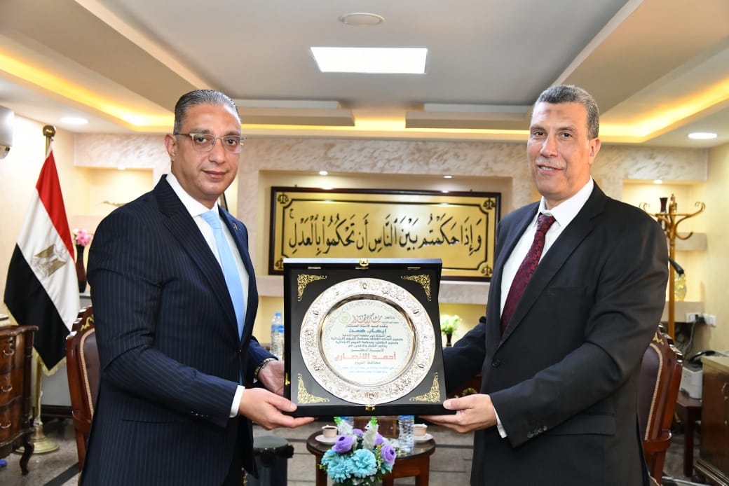 خلال الزيارة، قام رئيس محكمة الفيوم الابتدائية، بتسليم محافظ الفيوم، درعاً تذكارياً، تقديراً لجهوده في الارتقاء بمختلف القطاعات على أرض المحافظة.