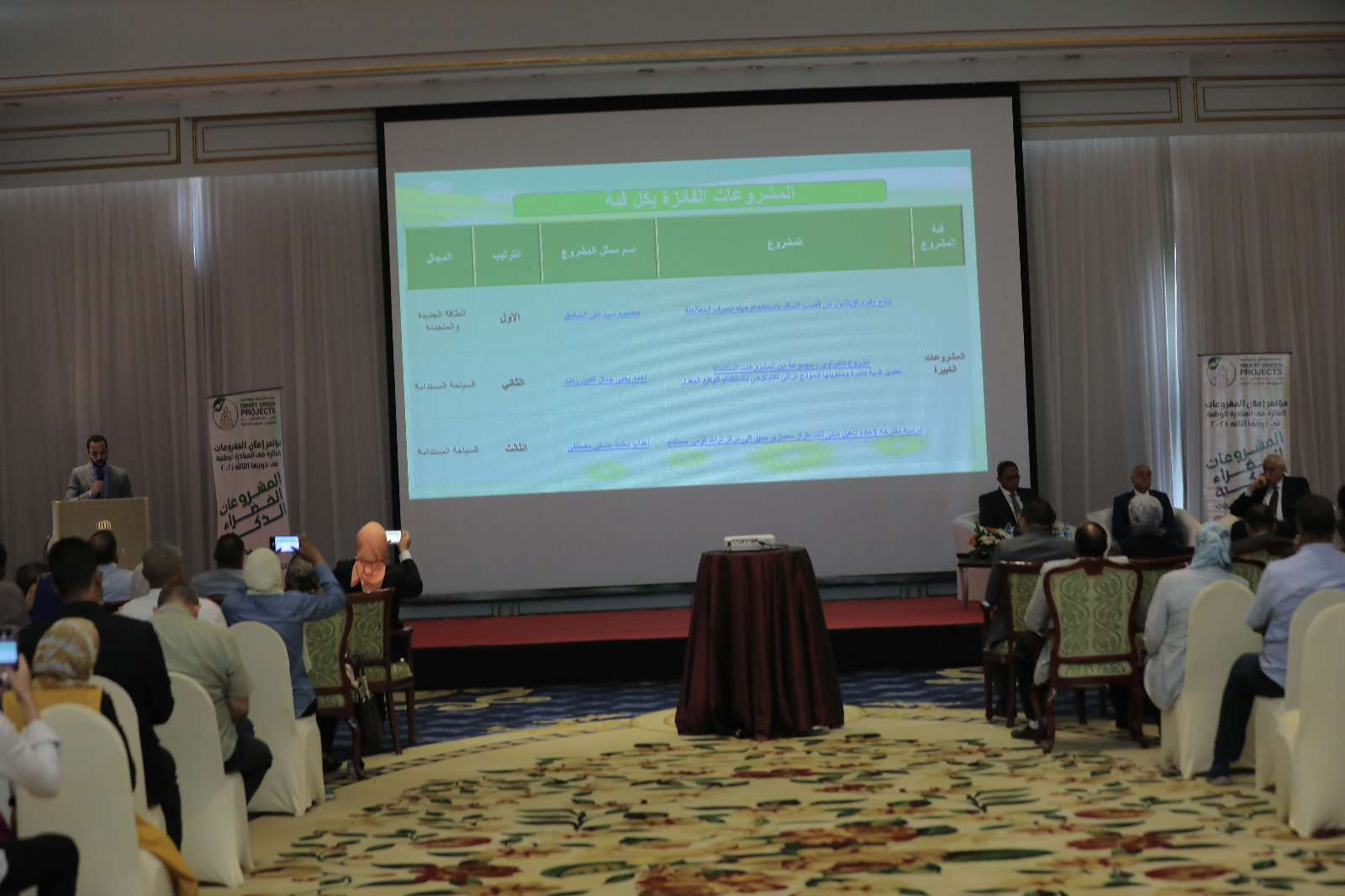 وعقب ذلك استمع الحضور إلي عرض تفصيلي قدمه منسقي المبادرة بالمحافظة الأربعة ، حول المشروعات التي تم تقديمها علي منصة المبادرة ، و مراحل ومعايير التقييم ، والمشروعات التي استوفت الشروط ، والمشروعات التى تأهلت للتقييم النهائي، كما تضمنت العروض شروح موجزة عن المشروعات المتاهلة وآلية عملها ، و أهدافها ، و مدي توافقها مع أهداف المبادرة الوطنية للمشروعات الخضراء الذكية .