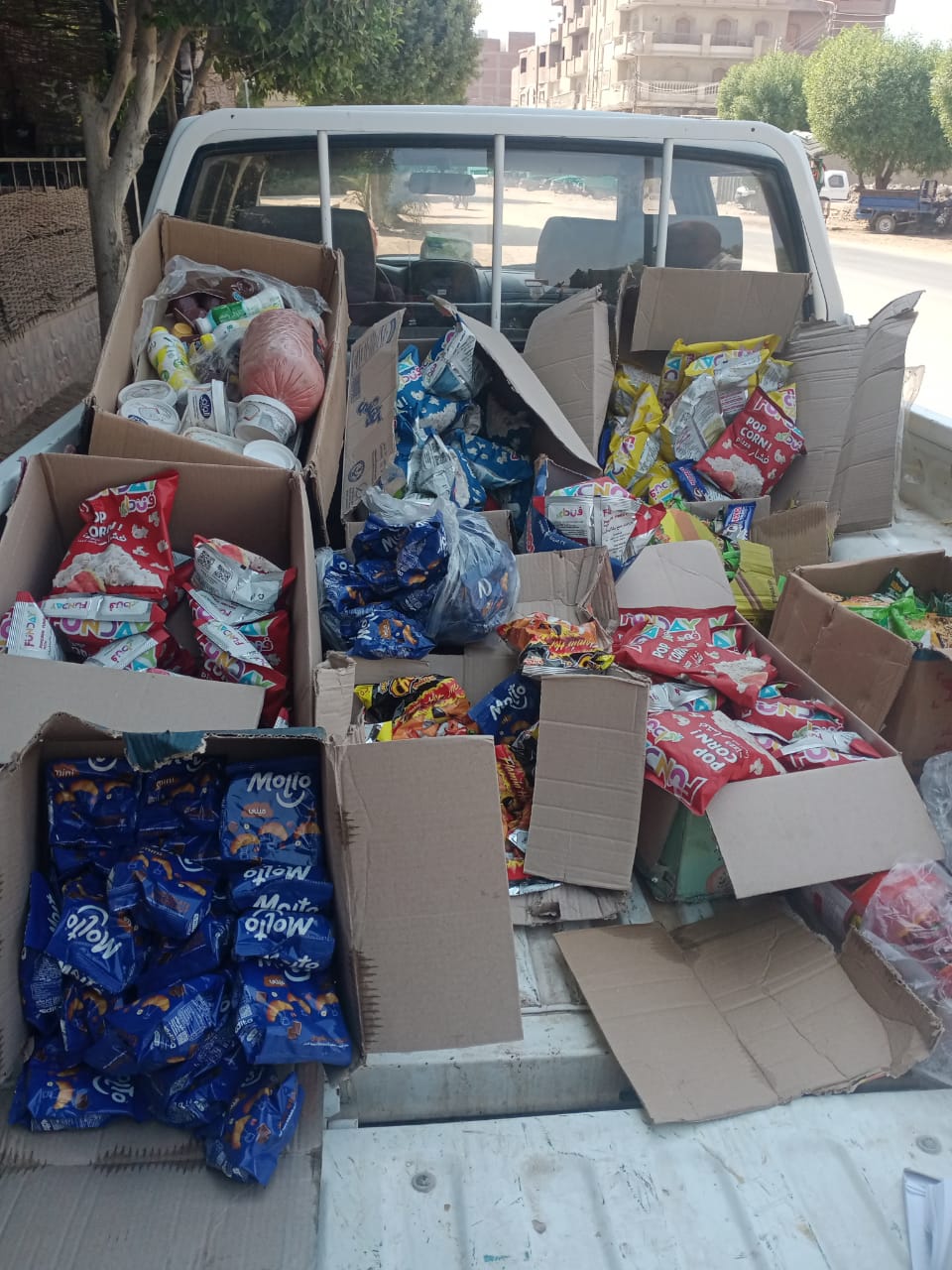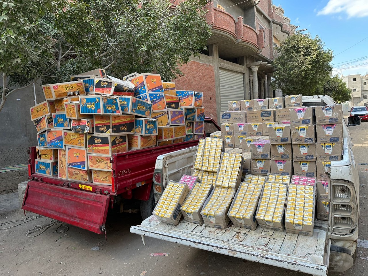 كما تم ضبط سلع غذائية منتهية الصلاحية وغير صالحه للاستهلاك الآدمي طبقا لتواريخ الإنتاج المدونة، حيث تم ضبط عدد 450 عبوة كيلوجز نودلز منتهية الصلاحية، و144 كيس سناكس منتهي الصلاحية، و24 كجم عسل أبيض مجهول المصدر بدون بيانات أو فواتير، و920 كيس عصير مجهول المصدر.