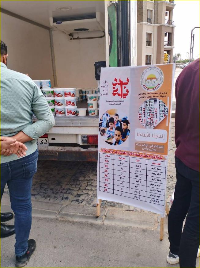 وأطلقت الهيئة العامة للإصلاح الزراعي، حملة “إنتاجنا لأبنائنا” بالتعاون مع القطاعات الإنتاجية بالوزارة ممثلة في قطاع تنمية الثروة الحيوانية والداجنة، وقطاع الإنتاج، والإدارة العامة للزراعات المحمية، لضخ وتوفير السلع والمنتجات الغذائية ط، من خلال المنافذ الثابتة والمتحركة، التابعة للوزارة بالمحافظات و الميادين العامة والمناطق النائية، بأسعار مخفضة لرفع العبء عن كاهل المواطنين، ومكافحة الغلاء، وأولياء الأمور بالتزامن مع العام الدراسي الجديد، حيث تم توفير كميات من بيض المائدة للبيع بسعر ١٥٠ جنيه للكرتونة، فضلا عن الدواجن واللحوم والألبان ومنتجاتهم، ومنتجات التصنيع الغذائي، ومواد البقالة، والبقوليات والخضر والفاكهة.