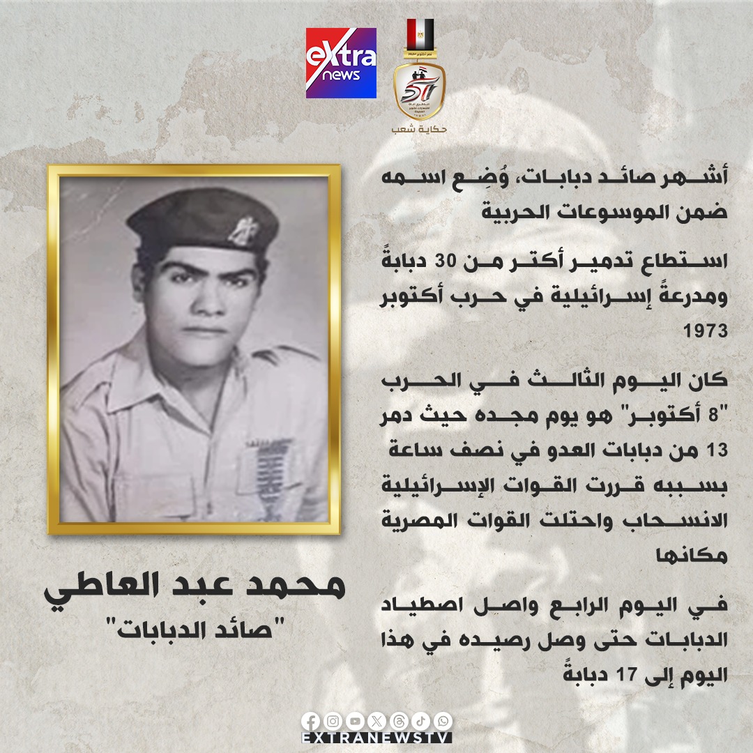 فى ذكرى انتصارات أكتوبر الـ(51 ) نشرت “أكسترا نيوز” انفوجراف يسجل مختصر سيرة عدد من أبطال أكتوبر من الجنواد والقواد تحت عنوان: “يوم في حياة جندي”