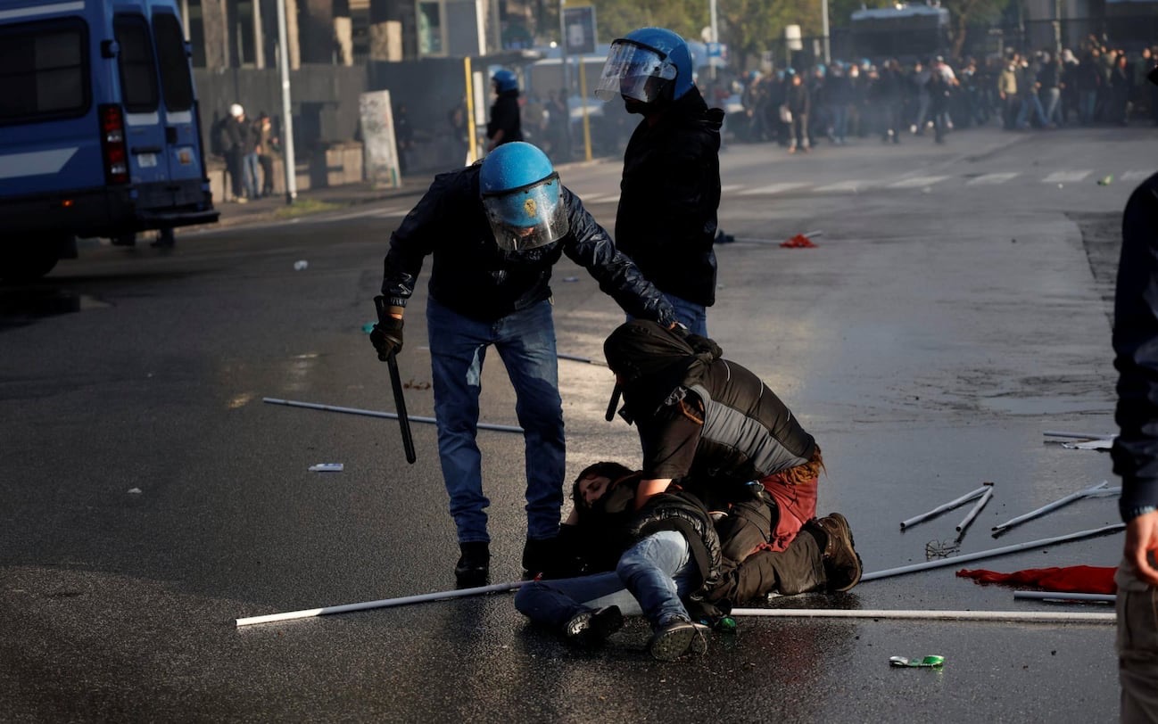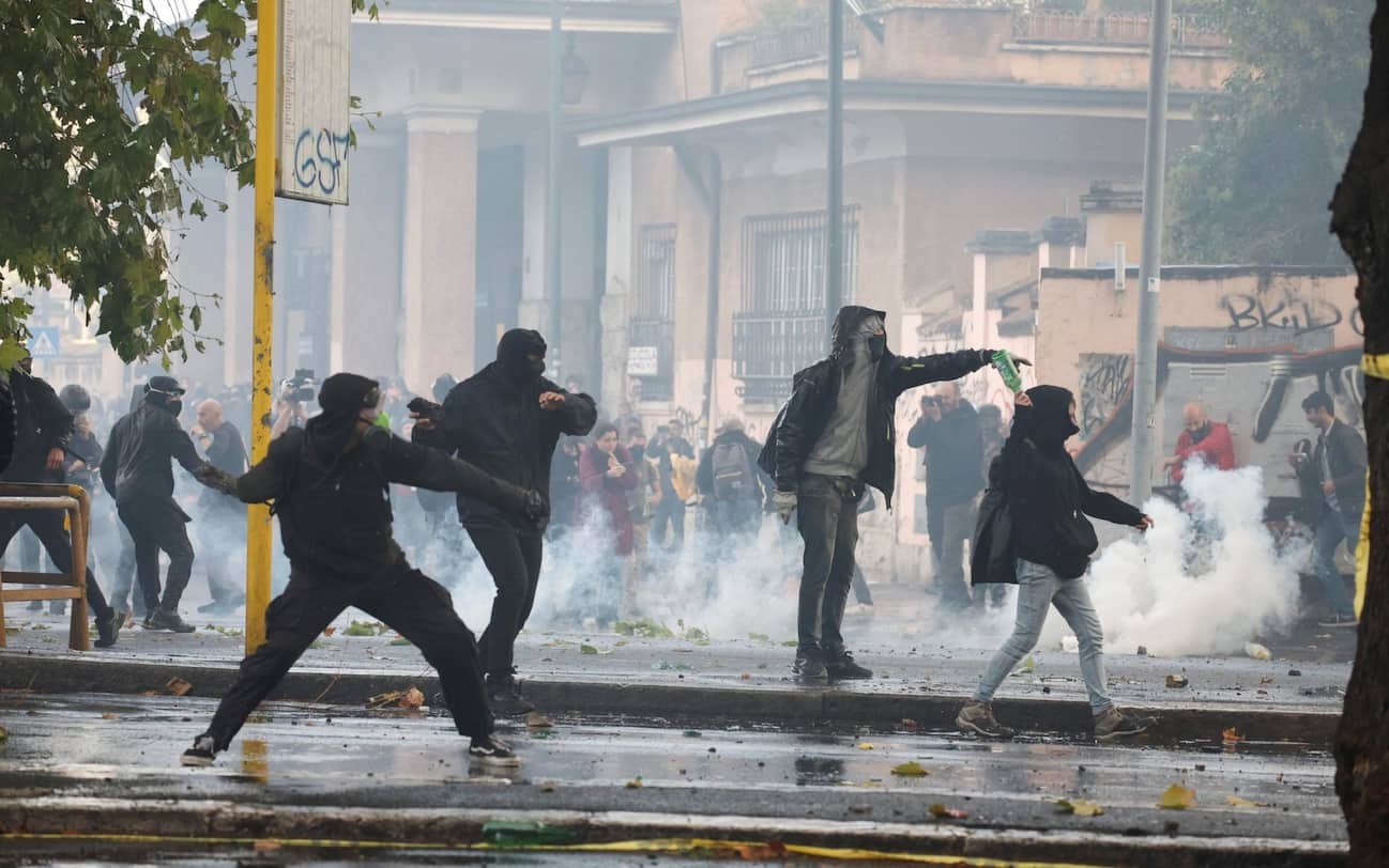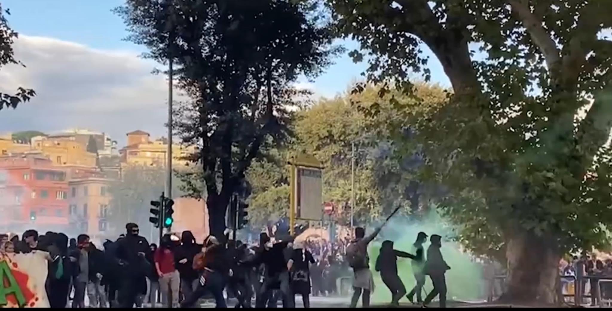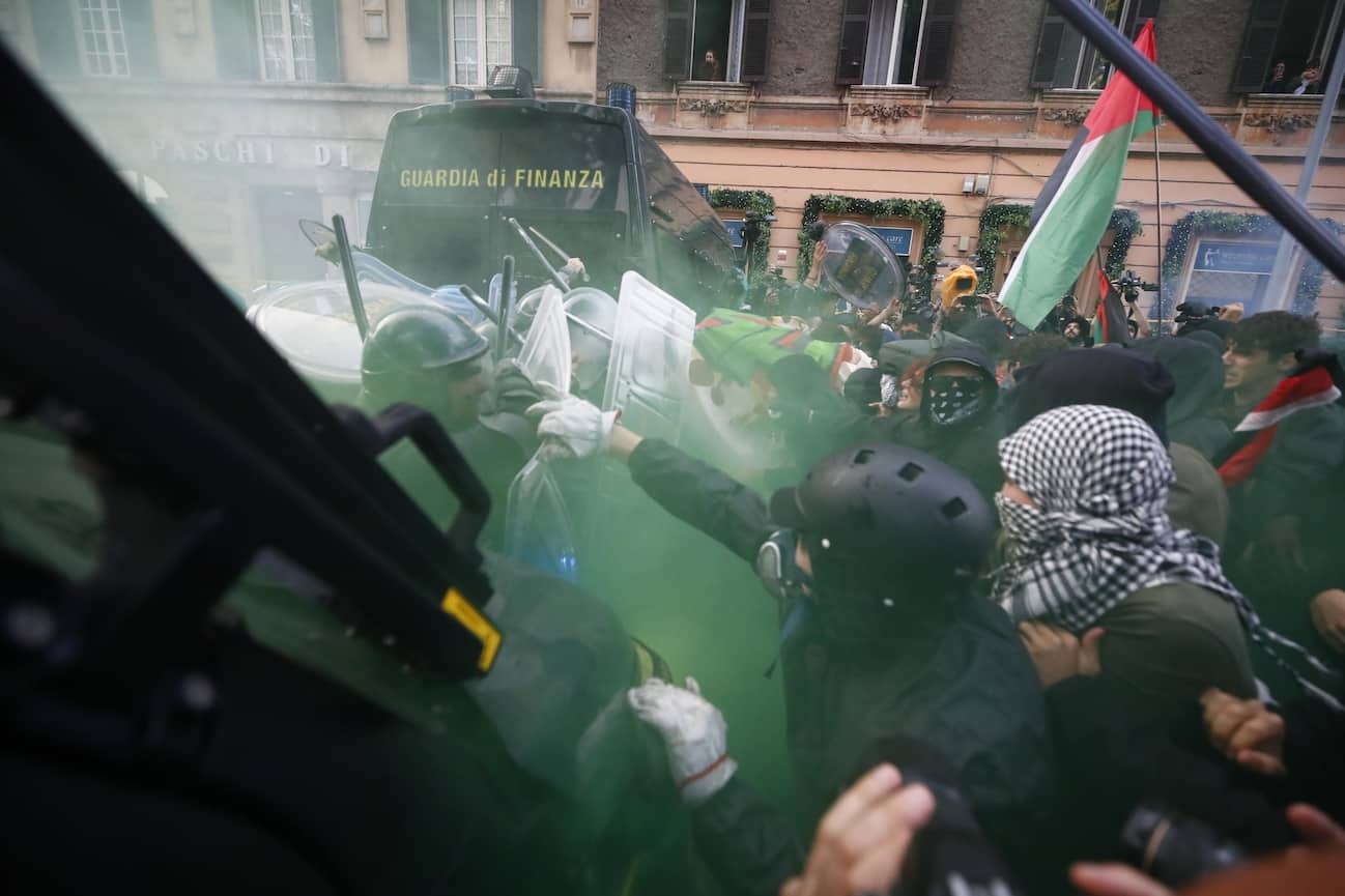 شهدت العاصمة الإيطالية روما أمس السبت 5 أكتوبر مصادمات واشتباكات عنيفة أشبه بحرب الشوارع بين قوات شرطة العاصمة، ومتظاهرين مؤيدين لفلسطين تزامنا مع الذكري الأولي لأحداث 7 أكتوبر .