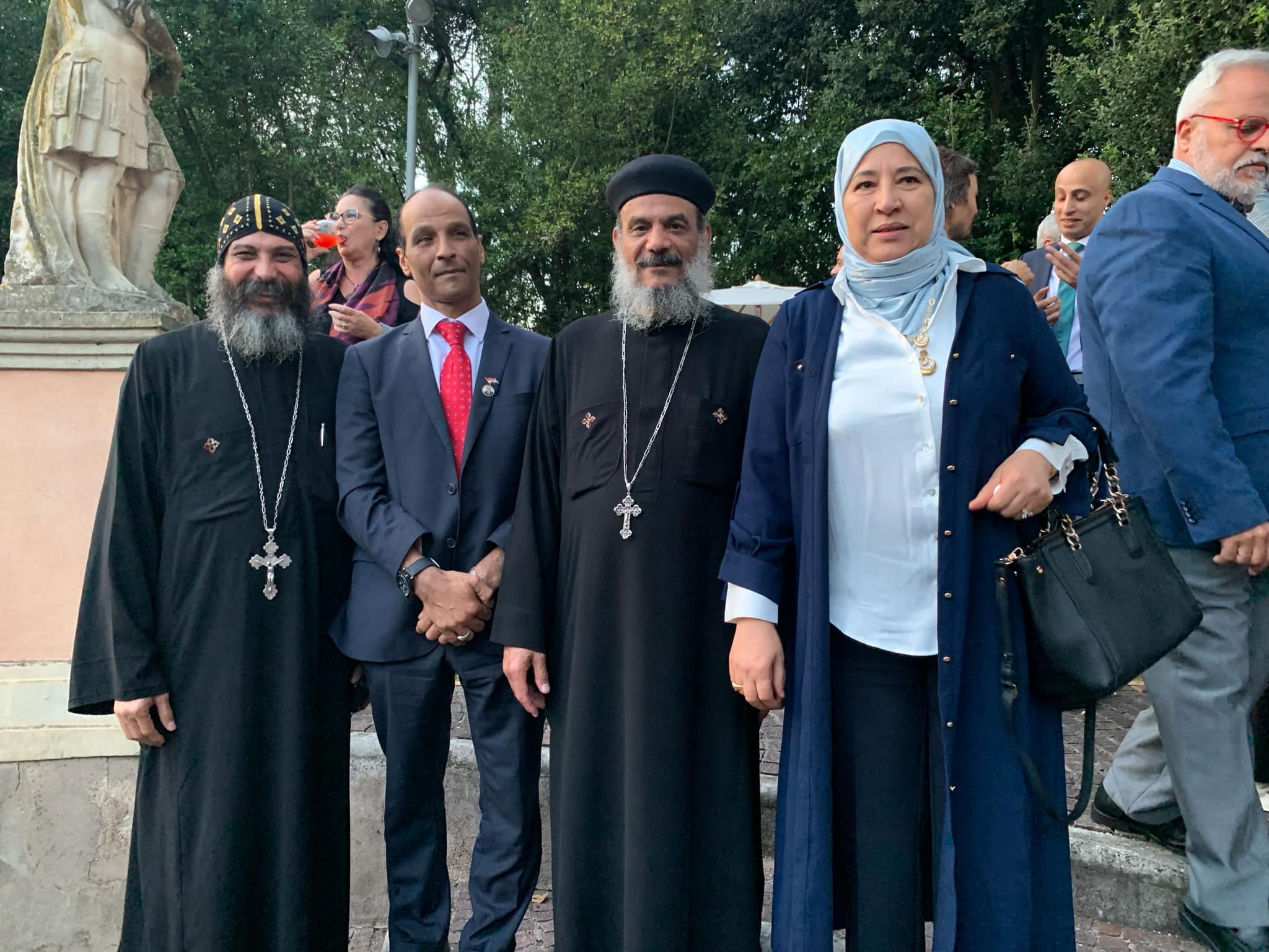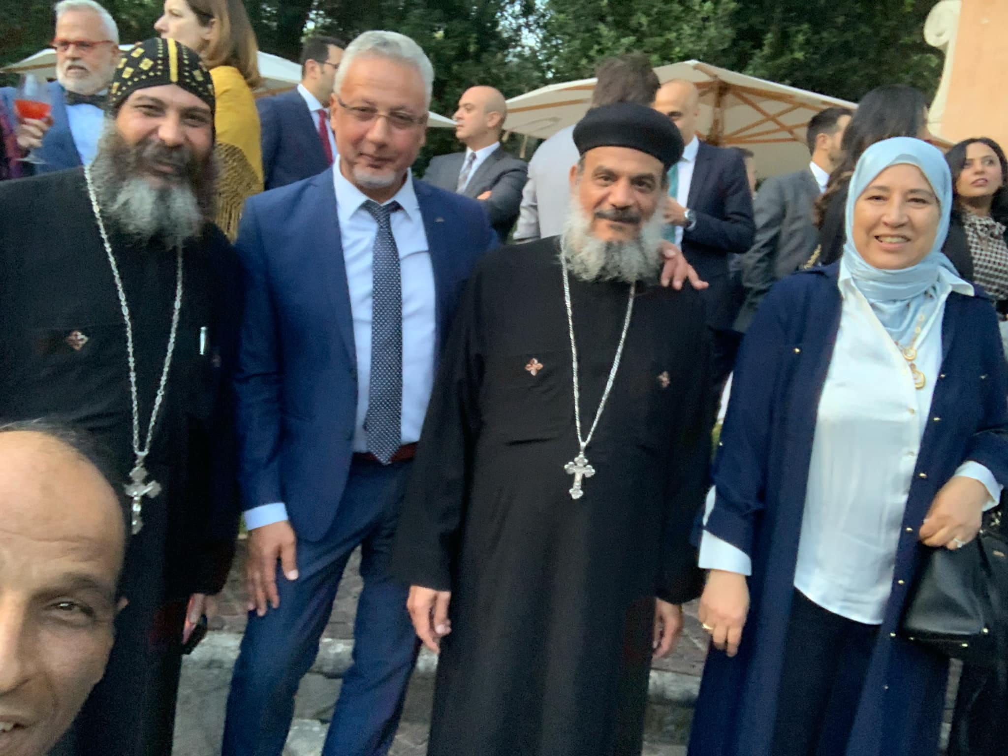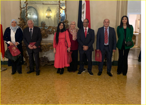 وكان في استقبال حضور الحفل السفير “بسام راضي”، سفير مصر فوق العادة في إيطاليا، واللواء “ياسر محجوب”، الملحق العسكري لمصر في روما، وعدد من أعضاء البعثة الدبلوماسية المصرية في روما.