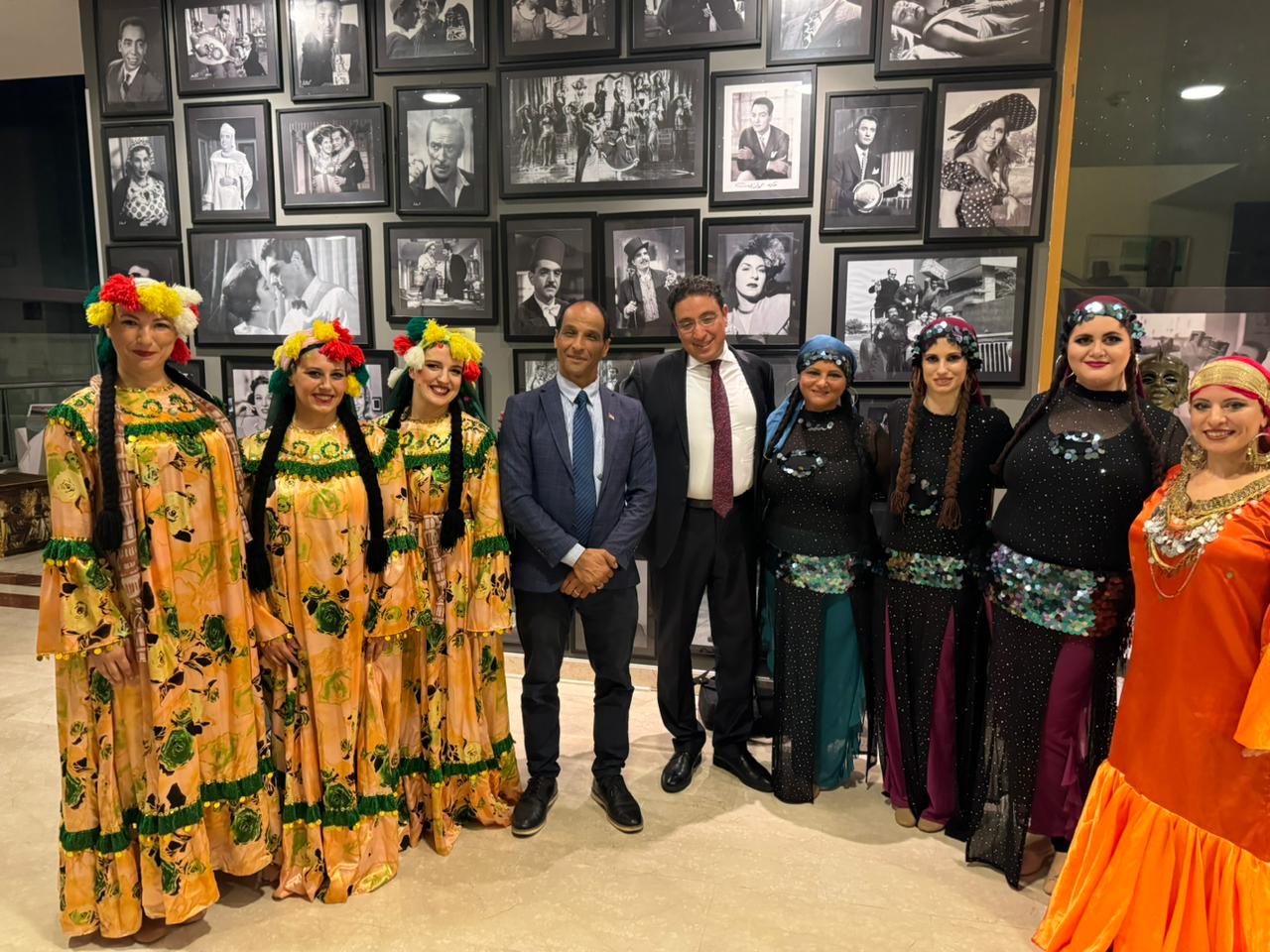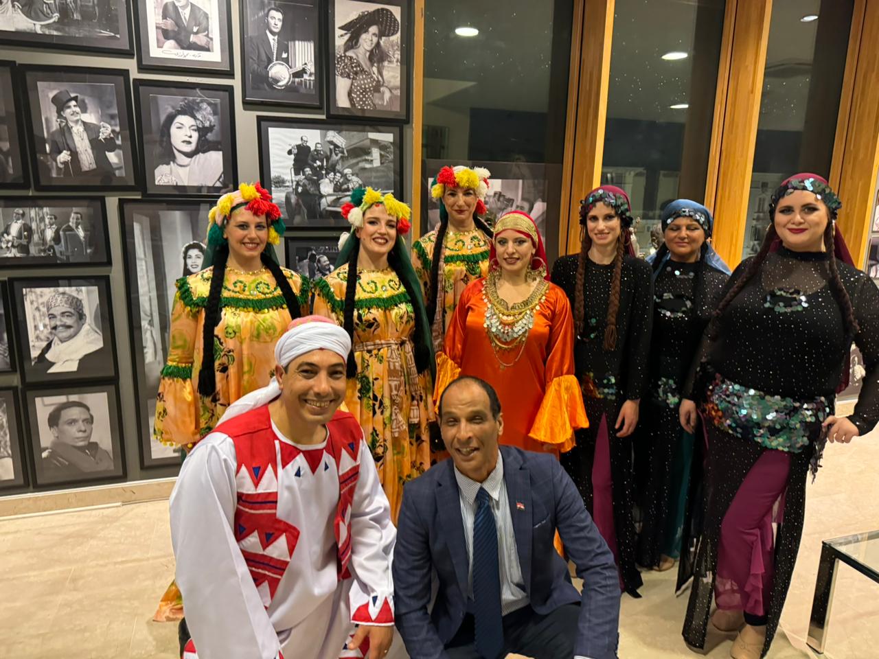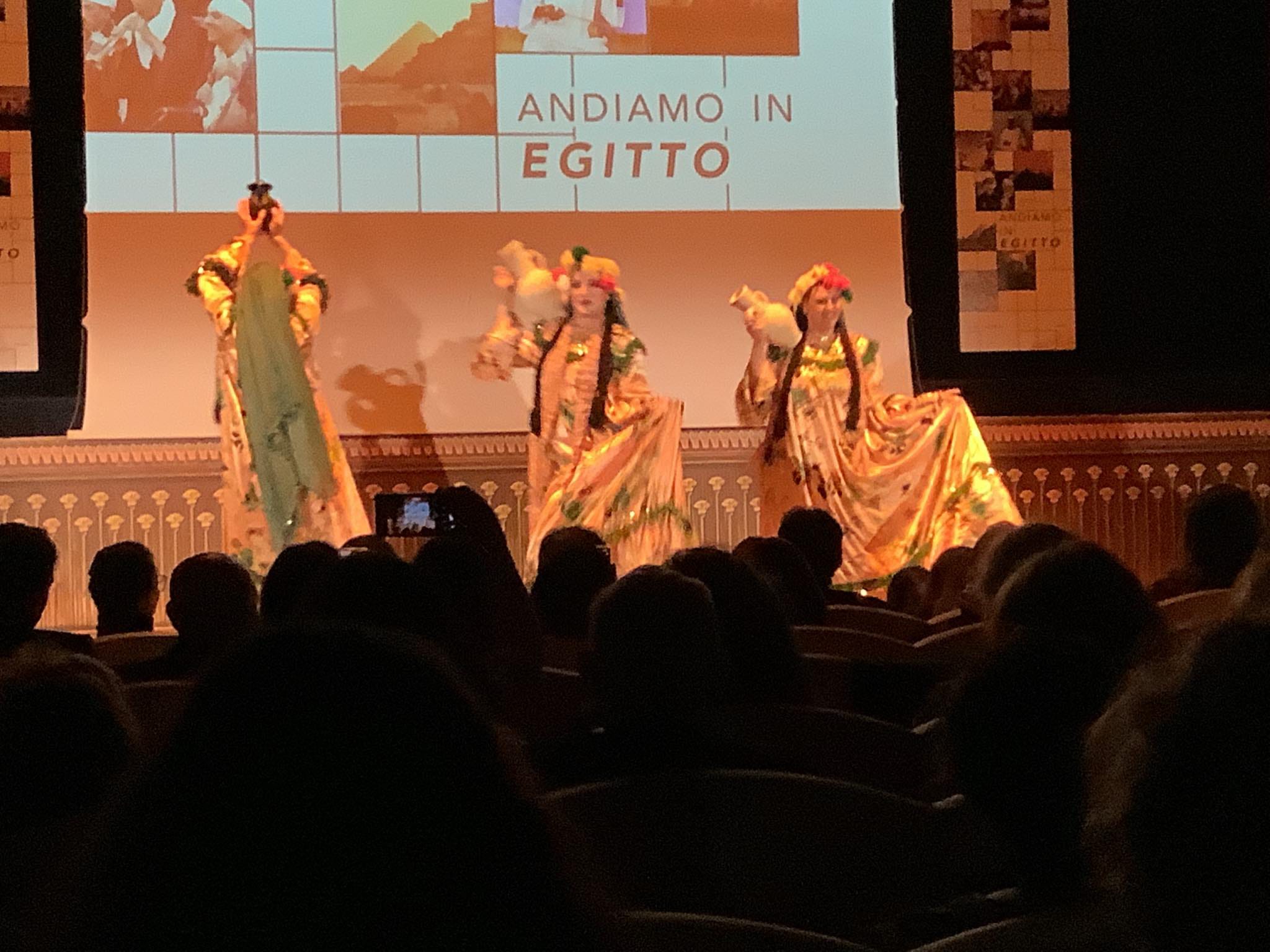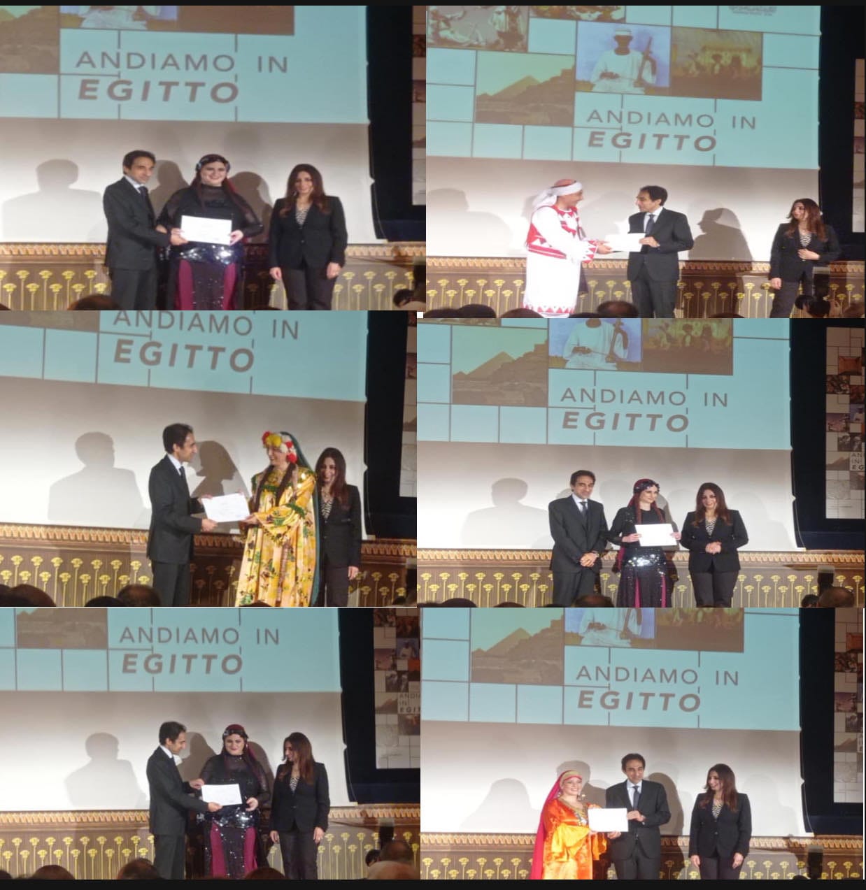 وبعدها قدم أحد فناني الفلكلور عرض التنورة ببراعة وأداء فني أبهر الحضور، تلاه عرض فلكلوري لبعض الرقصات المصرية الشهيرة قامت به إحدى الفرق الفلكلورية الإيطالية، والتي تنوعت ما بين الرقص الصعيدي والبدوي والشعبي، وسط تفاعل وإعجاب الحضور من الإيطاليين.