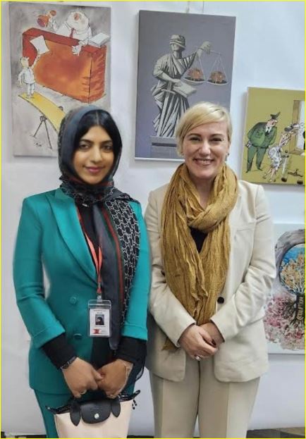 وأشارت عضو التحكيم؛ بأن اللوحات امتازت بعمق الأفكار، وبلغة سهلة تخاطب الجمهور، وامتاز حفل الافتتاح بحضور وزخم كبير من الجمهور المحب لفن الكاريكاتير.