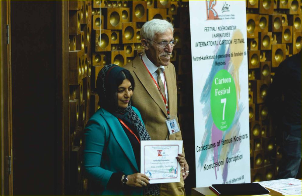 بحضور الفنان عجيم كراسنيكي مدير عام المهرجان، والفنانة الإماراتية آمنة الحمادي، وبحضور نخبة من فناني الكاريكاتير في كوسوفو والعالم، ولفيف من المهتمين بفن الكاريكاتير.