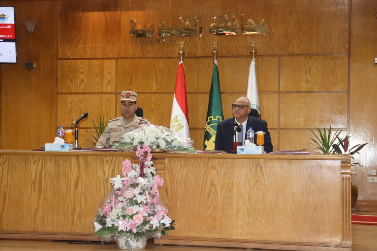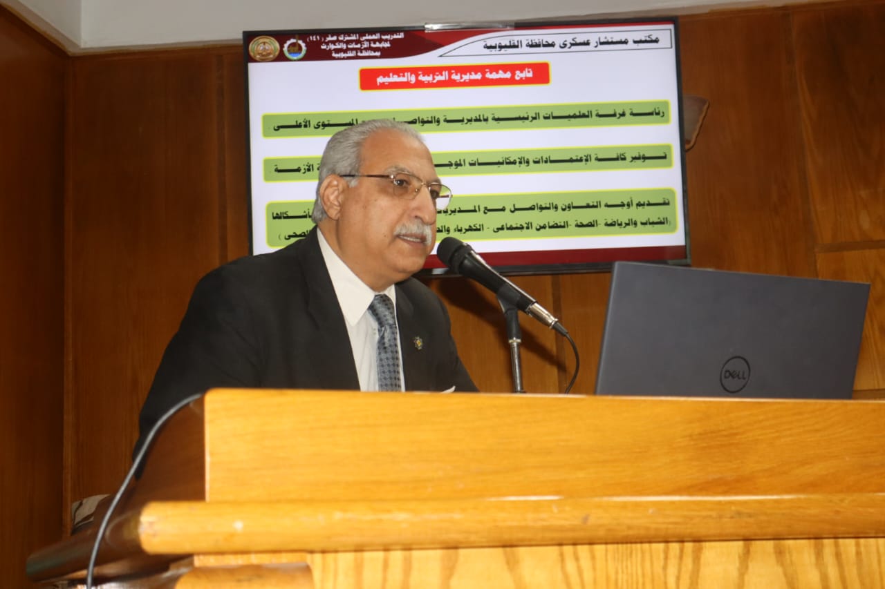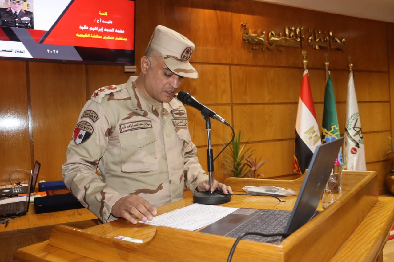 ومن جانبه، نقل قائد قوات الدفاع الشعبي والعسكري تحيات الفريق أول عبد المجيد صقر القائد العام للقوات المسلحة وزير الدفاع والإنتاج الحربي، والفريق أحمد فتحي خليفة رئيس أركان حرب القوات المسلحة، لكل الحاضرين، متمنيًا لهم دوام النجاح والتوفيق، مؤكدا أن القليوبية من المحافظات العريقة التي تتميز بنشاطها الزراعي والصناعي المتنوع كما أن بها أهم مشروعات تنظيم الري في العصر الحديث والذي يتمثل في القناطر الخيرية