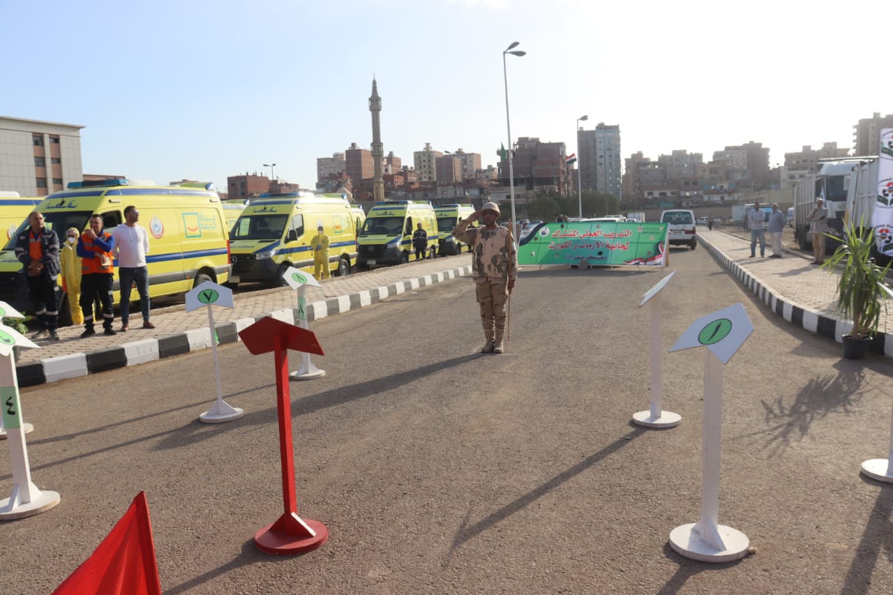 كما تابع المحافظ وقائد قوات الدفاع إصطفاف المعدات الميكانيكية و الهندسية والفنية من سيارات ولوادر تابعة لمراكز المدن والمديريات الخدمية بإجمالي 230 معدة ومركبة، مشاركة في التدريب العملي المشترك صقر 141 لمجابهة الأزمات والكوارث بأرض كلية التربية الرياضية بمدينة بنها.