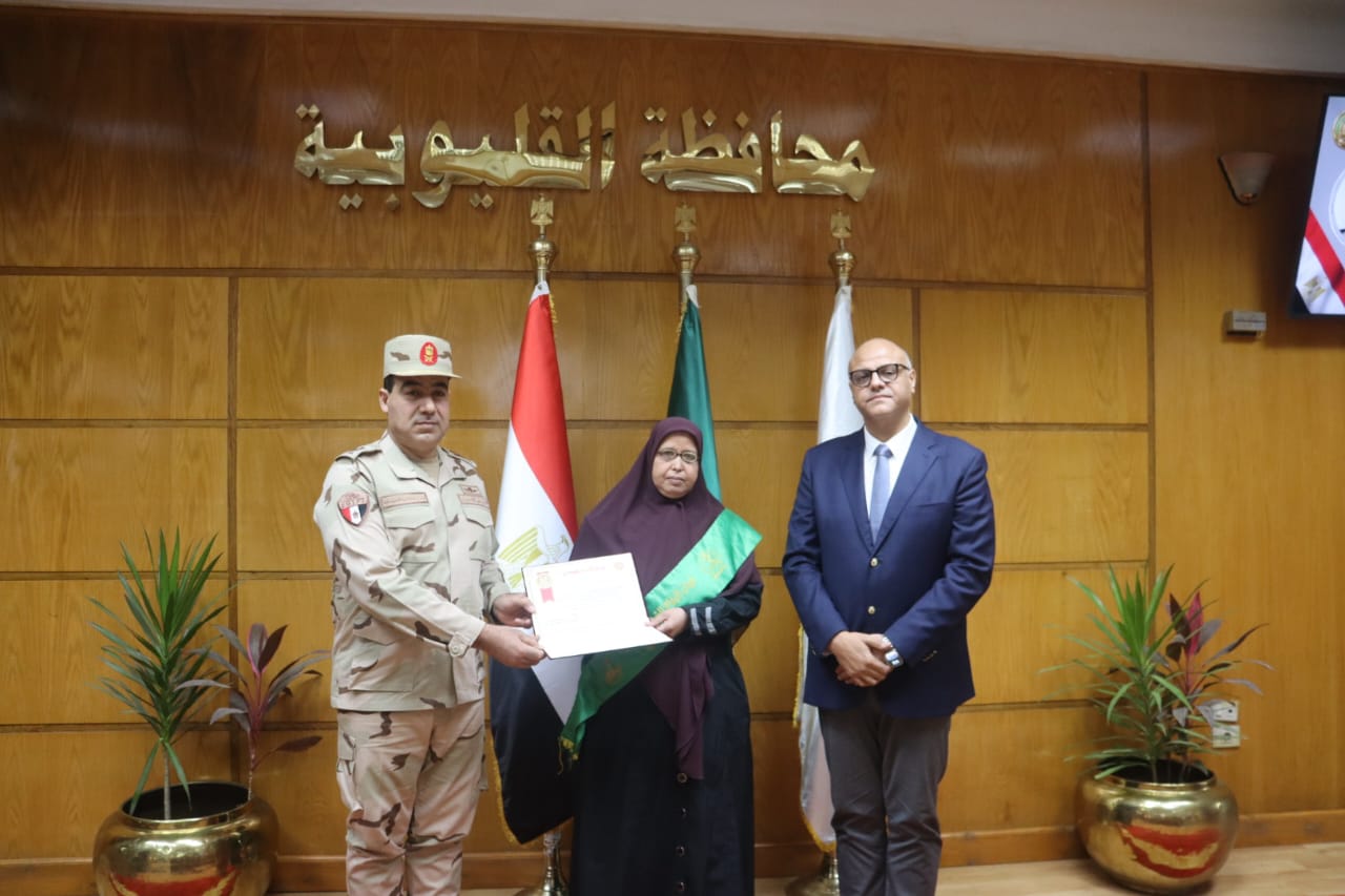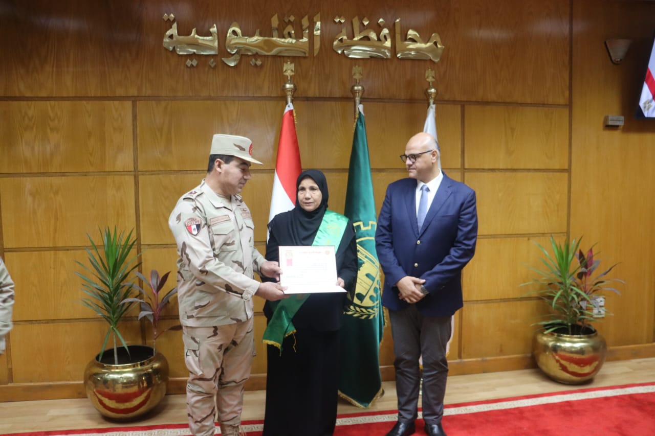 وكرم محافظ القليوبية قائد قوات الدفاع الشعبي والعسكري أُسر الشهداء الذين قدموا أرواحهم دفاعًا عن الوطن، مؤكدين أن مصر لن تنسى من ضحوا بدمائهم فدائها، وستظل تضحياتهم في أذهان الأجيال القادمة وهم ، نقيب شهيد أحمد محروس محمد حسين ونقیب شهيد إبراهيم محمد إبراهيم السيد ومساعد شهيد سعد عطا عبده بكر.