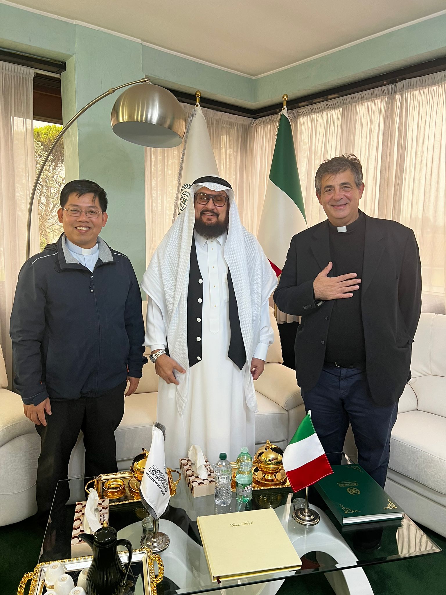 وسعادة السفيرة إيناس مكاوي، ممثلة الجامعة العربية في إيطاليا، والدكتور أسامة رشيد رئيس اكاديمية الحوار في فلورنسا، والمونسينيور عادل نصر من الفاتيكان، والدكتور عبد الحق إكوديان، أمين المجمع الأوروبي للدعاة والأئمة، والأستاذ عزيز ظريف، والداعية الإسلامي الإيطالي، ياسين جنتيلي، مصحوباً بوفد من الطلاب والطالبات، كما زار المكتب الدكتور زهير غنيم رئيس جمعية الكشافة الإسلامية، والمونسينيور خالد عكشة من الفاتيكان، والبروفيسور روزانا تشيربو.