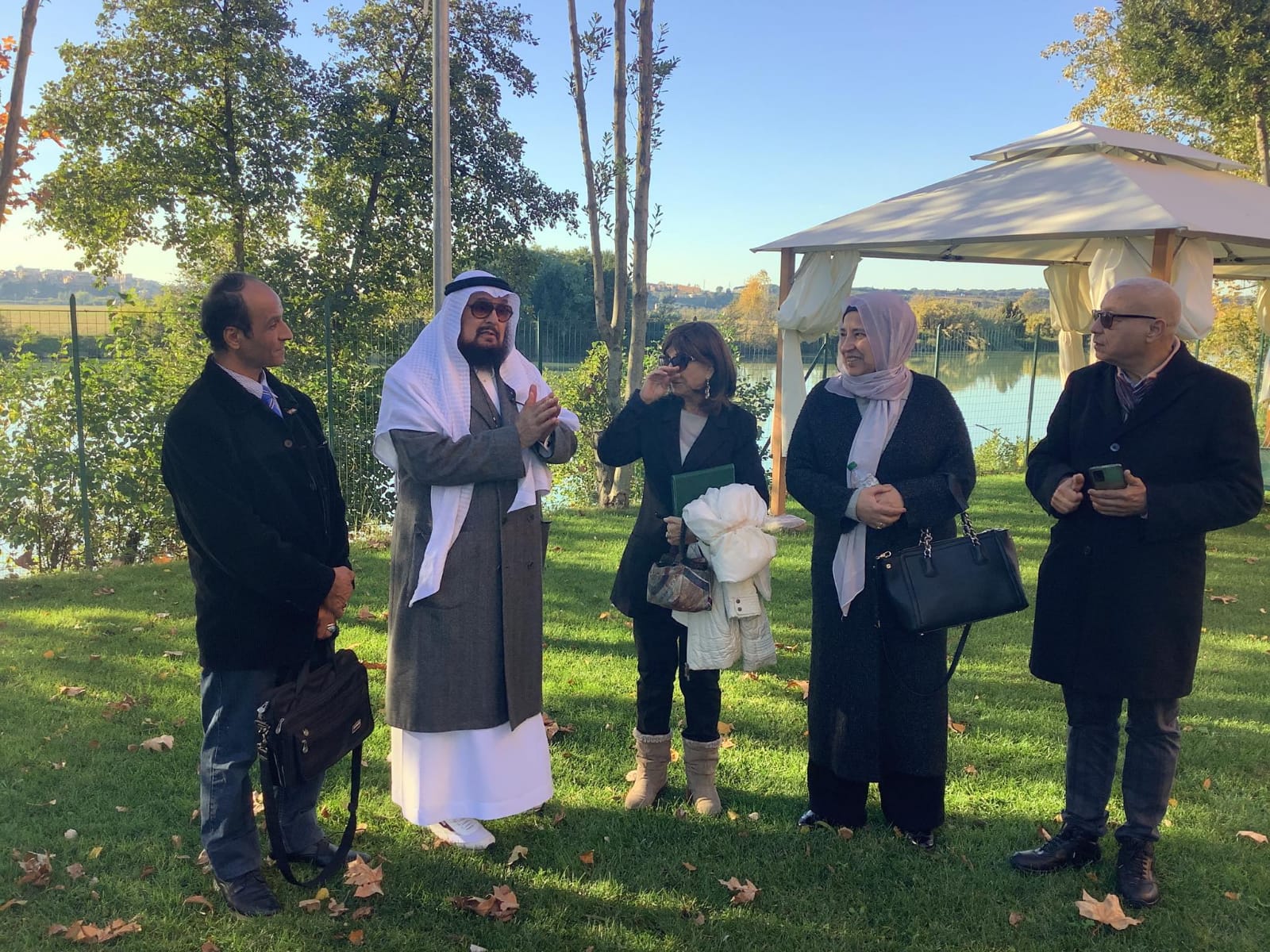 وأختتمت الزيارة بجولة، إصطحب فيها الدكتور عبد العزيز سرحان، ضيوفه لمشاهدة ذلك الصرح الجديد على مساحة عشرين ألف متر مربع، والذي يضم مبني إداريا من ثلاث طوابق يحتوي على قاعة للإجتماعات والندوات ومكتبة تحت الإنشاء، أكد الدكتور ” سرحان ” أنها سوف تضم أمهات الكتب في التراث والتاريخ بعدة لغات، وسيضم المقر الجديد أيضا، ثلاث قاعات للمؤتمرات على مساحة تتجاوز الألف وأربعمائة متراً مربعاً، مازالت تحت التصميم، والتي ستكون مقصداً للعديد من المناسبات والنشاطات المختلفة، ويحيط بالمبني حديقة مثمرة، تطل على نهر التيبر، في مشهد خلاب يبعث الراحة في النفس ، كأنها جنة الله في أرضه.