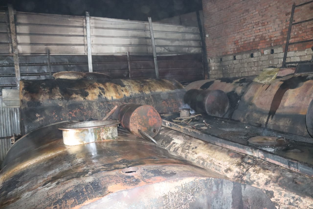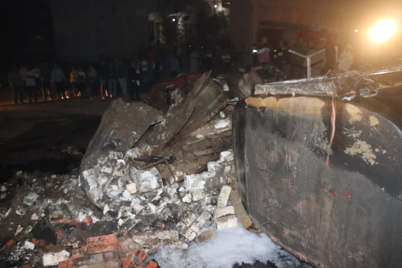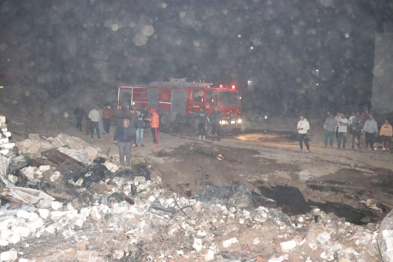 بالصور: حريق مخزن لتجميع الزيوت المستعملة بميت حلفا بقليوب