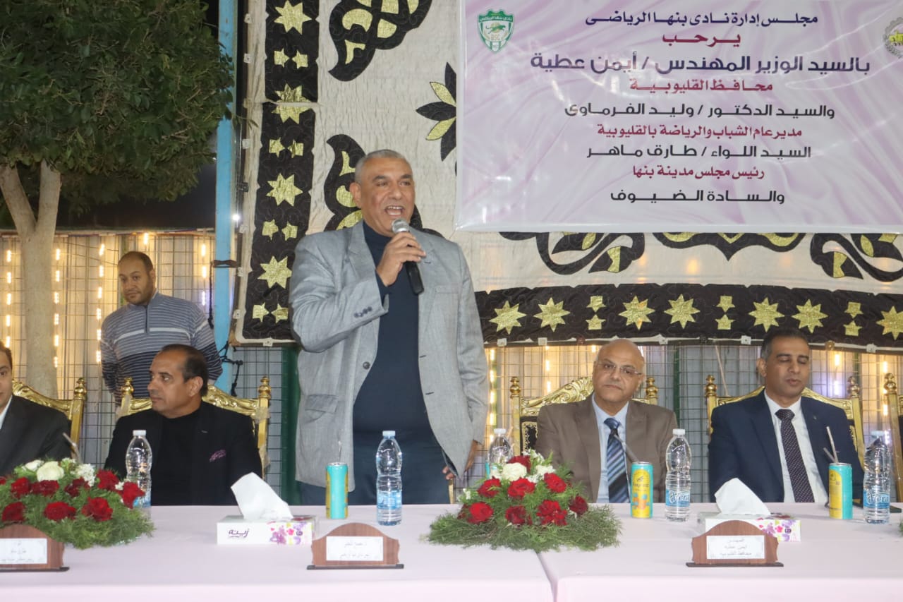 شهد المهندس أيمن عطية محافظ القليوبية مساء اليوم فعاليات احتفال نادى بنها الرياضى بتكريم الحاصلين علي مراكز متقدمه ببطوله العالم الخماسي الحديث سباحه جري، رمايه بنادى بنها الرياضى وابطال الكونغفو بنادى طوخ الرياضى ونادى قليوب بحضور الدكتور وليد الفرماوي مدير عام الشباب والرياضة، اللواء طارق ماهر رئيس مجلس ومدينه بنها والدكتور مصبح الكحيلي رئيس مجلس اداره نادي بنها الرياضي، عبدالخالق زعزع رئيس مجلس إدارة نادى طوخ، واعضاء مجلس اداره نادي بنها، وتاتي الاحتفالية فى إطار حرص المحافظه على تشجيع الرياضه، حيث تضمن الاحتفال بتكريم ١٠ لاعبين حاصلين علي مراكز متقدمه ببطوله العالم الخماسي الحديث سباحه -جري – رمايه وتكريم عدد ٦ مدربين القائمين علي تدريب اللاعبين الذين حققوا مراكز متقدمه في بطوله العالم الخماسي كما تضمن الاحتفال بتكريم اللاعبين الذين حققوا مراكز متقدمه ببطوله أفريقيا للكنغو فو بنادي طوخ الرياضي ونادى قليوب.