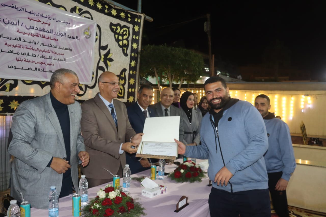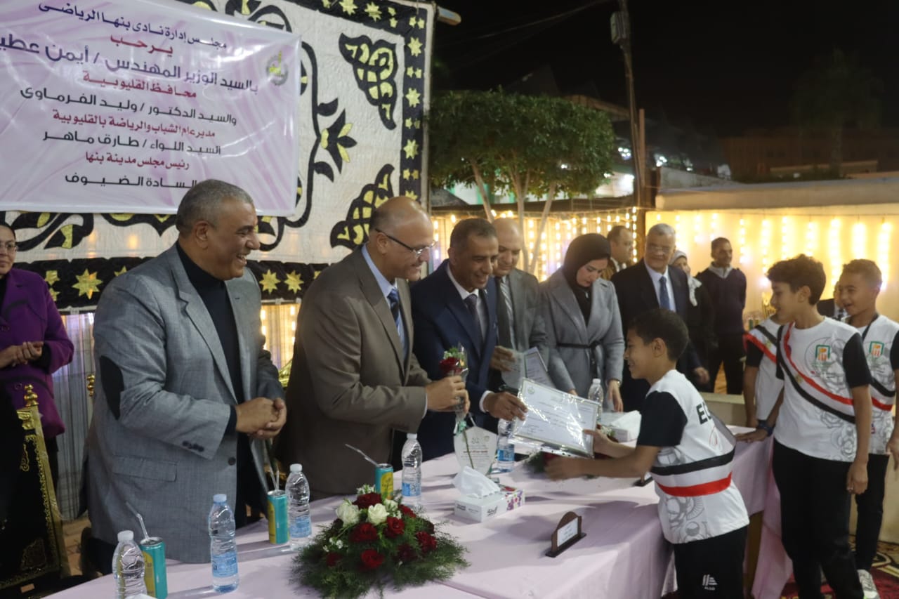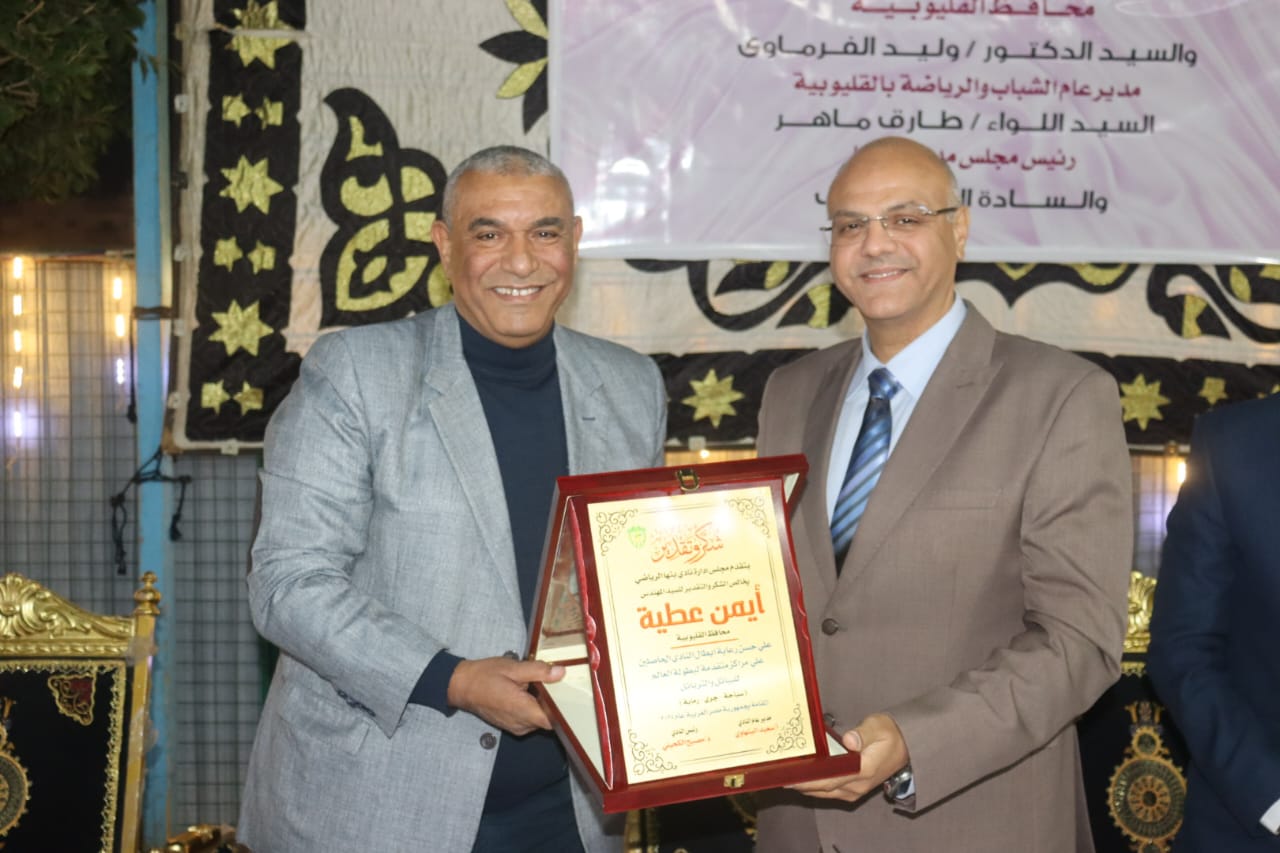 يذكر أن تكريم الأبطال الرياضيين والاهتمام بالأنشطة الشبابية والرياضية يأتى تحت رعاية الدكتور أشرف صبحى وزير الشباب والرياضة، والمهندس أيمن عطية محافظ القليوبية وإشراف الدكتور وليد الفرماوي مدير عام الشباب والرياضة بالقليوبية.