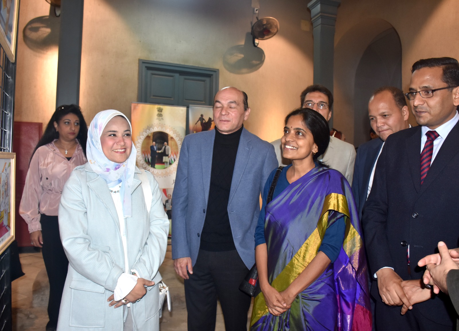 افتتح المعرض كلا من المعماري حمدي السطوحى مساعد وزير الثقافة للمشروعات الثقافية والمشرف على قطاع صندوق التنمية الثقافية، والسيدة س. شوشما القائم بأعمال سفير الهند بالقاهرة، وبحضور الدكتور مينا رمزي رئيس دار الكتب، والدكتور براكاش تشودهاري مدير المركز الثقافي الهندي، والكاتب الصحفي طارق الطاهر المشرف على متحف نجيب محفوظ، والفنان فوزي مرسي منسق المعرض، ونخبة من فناني الكاريكاتير وعدد من الصحفيين والإعلاميين والجمهور.