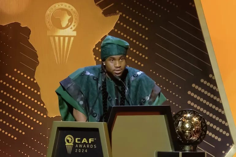 فاز النيجيري ادميولا لوكمان نجم منتخب نيجيريا و نجم اتالانتا الايطالي بجائزة افضل لاعب فى أفريقيا عام ٢٠٢٤ خلال حفل (الكاف) التي أقيم خلال حفل بمدينة مراكش بالمغرب.