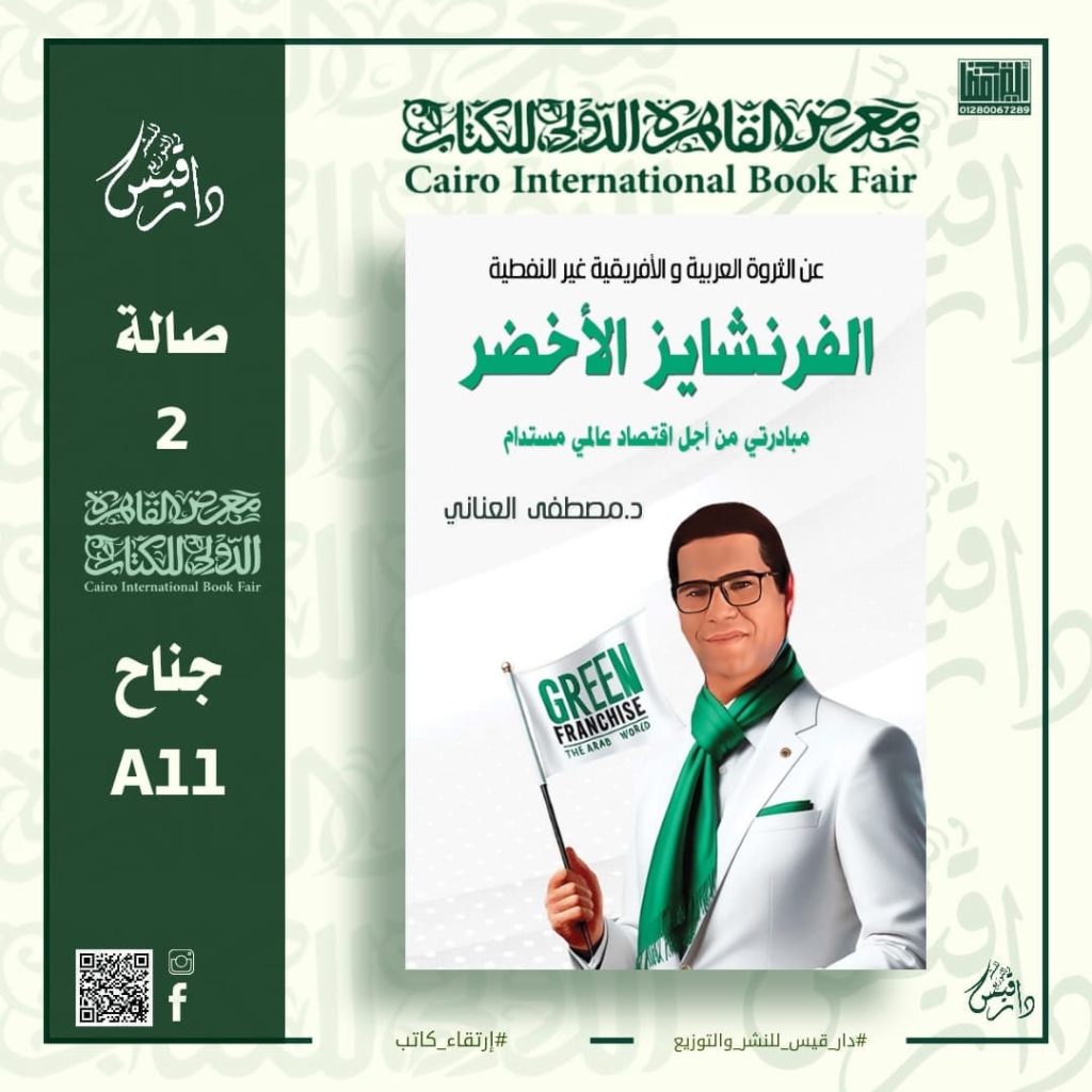 الدكتور مصطفى العناني يشارك بكتابه الجديد “الفرنشايز الأخضر: مبادرتي من أجل اقتصاد عالمي مستدام”، بالإضافة إلى كتابه السابق “روشتة إنقاذ الجنيه: أفكار لحصد الدولار”.